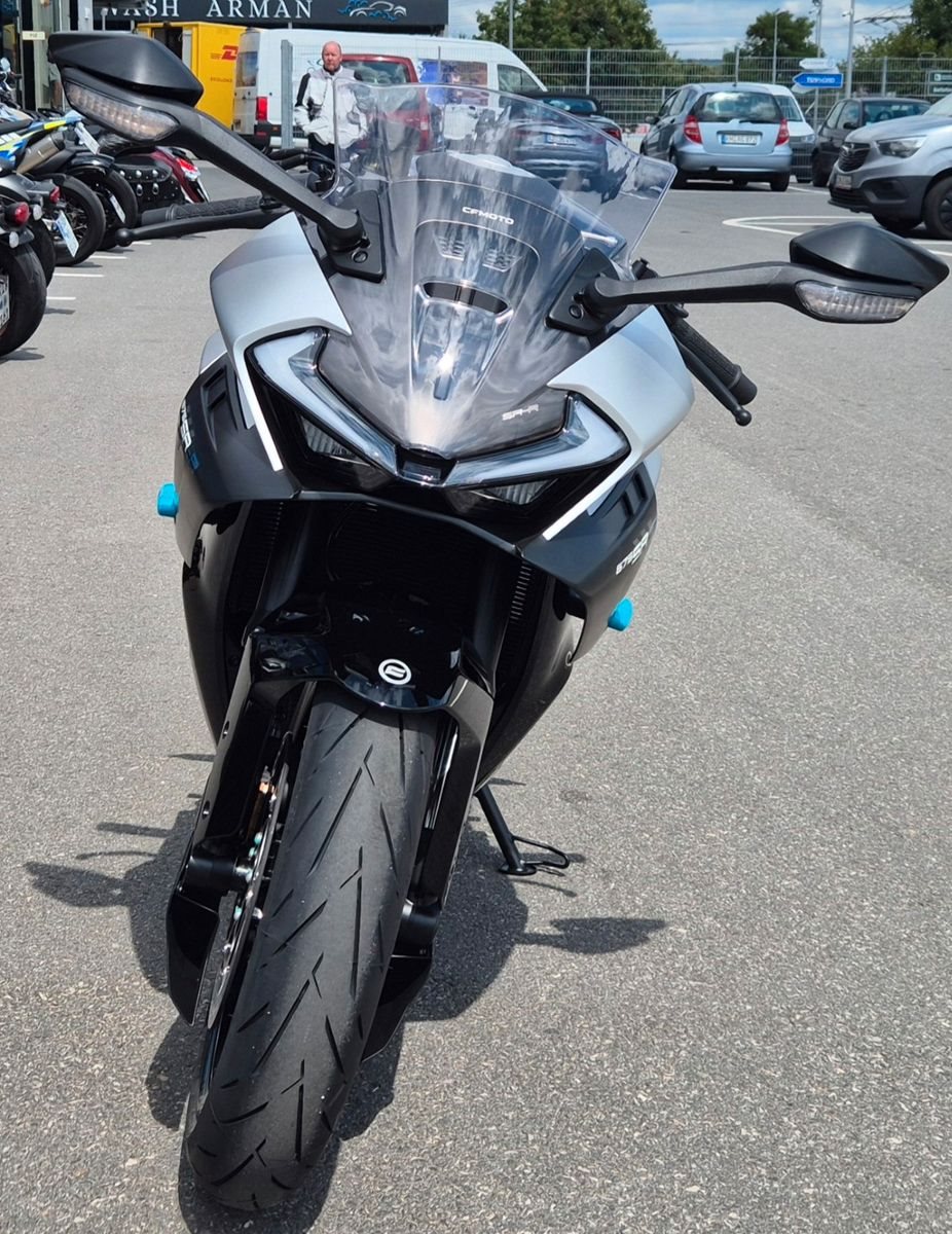 Die neue CFMOTO 675SR-R u?berzeugt mit kompromissloser Sportlichkeit. Ihr Dreizylinder-Reihenmotor liefert lineare Leistungsentfaltung und beeindruckende Beschleunigungswerte. Das kompakte Chassis bietet in Kombination mit hochwertigen Fahrwerkskomponenten ein spielerisch-agiles Handling. Und ihr Design ist bis ins Detail auf absolute Performance ausgelegt. Unter dem aggressiven Racing-Look steckt pure Technikbegeisterung: 674 cm Dreizylinder, 90 PS, 68 Nm Drehmoment. Das voll einstellbare KYB-Fahrwerk, radial montierte 300-mm-Doppelscheibenbremsen von J.JUAN, Quick-Shifter, TCS und ein leichter Aluminiumrahmen sorgen für exakte Kontrolle in jeder Kurve - für smarte Racer:innen mit Anspruch.