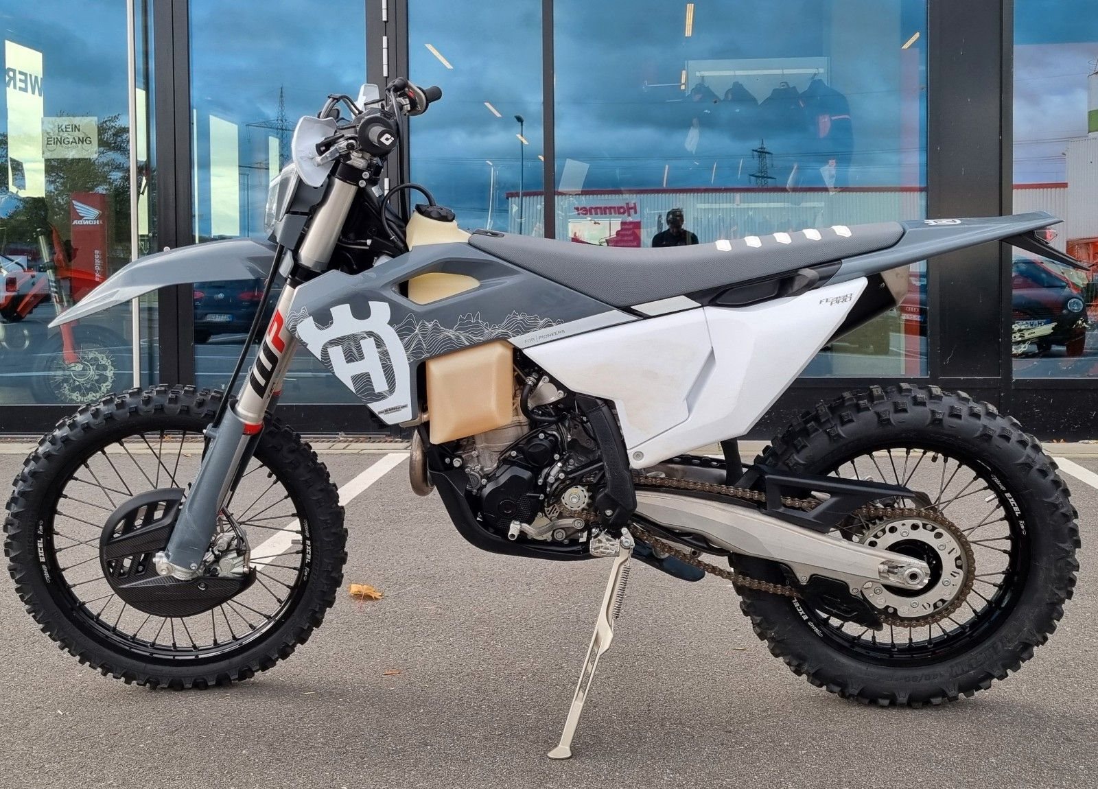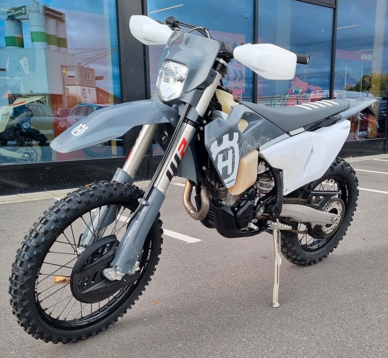 Bereits das Serienmodell erreicht eine perfekte Balance zwischen Leistungsstärke und Handling. Eine umfangreiche Liste von technischem Zubehör bringt Performance und Haltbarkeit der FE 350 Pro Serie auf ein noch höheres Niveau. Ausgestattet mit Premium-Komponenten zur Verbesserung der Bremseigenschaften, der Sicherheit und des Fahrerkomforts ist die FE 350 Pro Serie zweifellos das vielseitigste und konkurrenzfähigste Enduro-Bike, das je von Husqvarna Motorcycles gebaut wurde. Die charakteristische Rennlackierung in Grau und Weiß und der mit einer schwarzen Pulverbeschichtung überzogene Rahmen runden die Liste der Verbesserungen ab und verleihen diesem aufregenden neuen Motorrad einen einzigartigen Look.