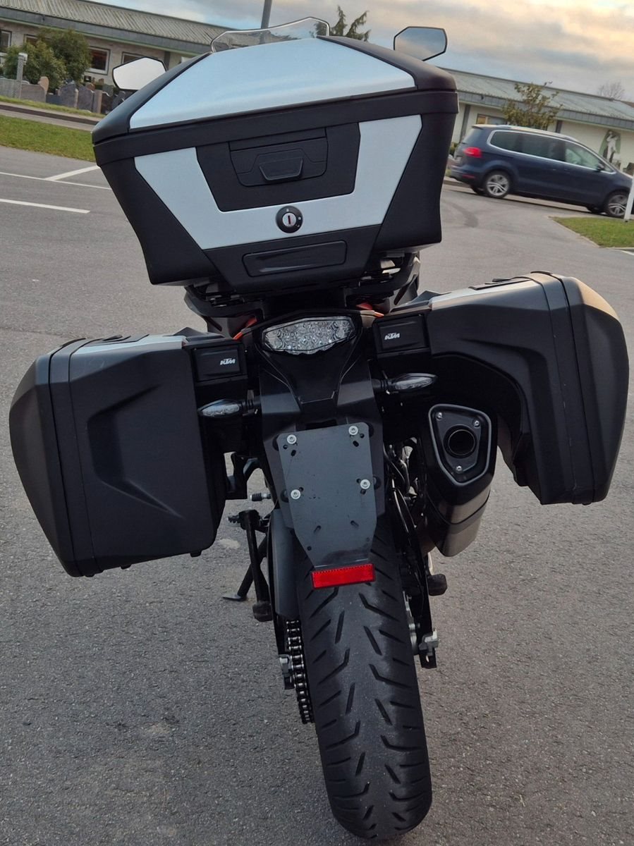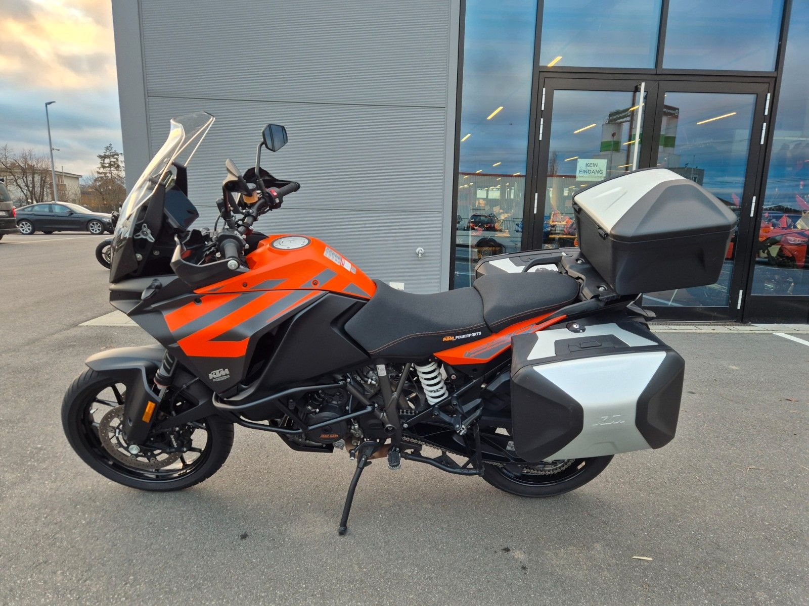 Koffersatz, Topcase, Sturzbügel, Hauptständer, elektrisches Fahrwerk, Powerparts Sitzbank, Griffheizung, Sitzheizung