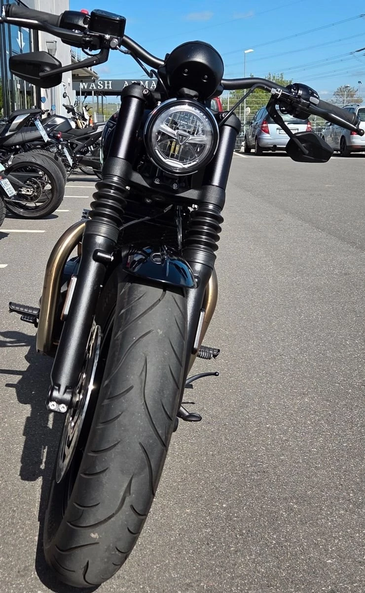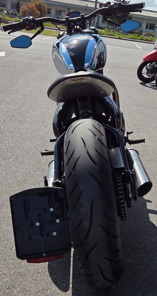 Wunderkind seitlicher Kennzeichen Halter, Lenker Erhöhung, Spiegel, Gabelrohr Cover, Lenkkopfmutter & Gabelstutzen, Triumph Scheinwerferring CNC, Cover Abdeckungen seitlich - LSL Lenker Street Bar, Motogadget Lenkerendblinker, Kellermann Atto 3in1 hinten mit Extra Halter zum Betrieb ohne Kotflügel