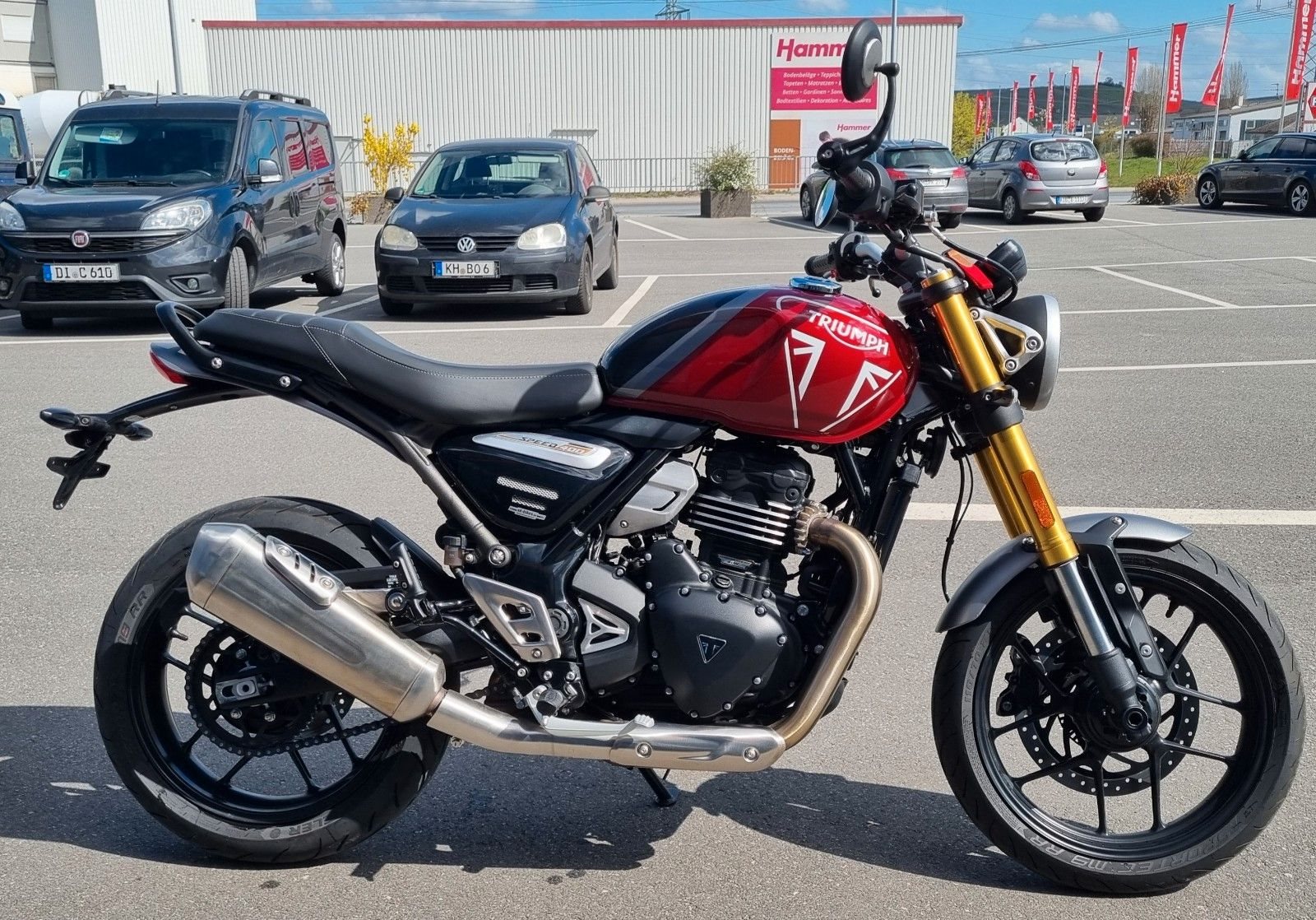 Der neue Einzylindermotor der TR-Serie wurde nach dem Vorbild legendärer Triumph-Motorräder aus der Vergangenheit entwickelt und mit modernsten Technologien ausgestattet, um eine voll nutzbare, charaktervolle Leistung mit spontanem Ansprechverhalten und erstklassiger Performance zu entfalten.Die Sitzposition ist neutral und vermittelt dabei ein mitreißendes Fahrerlebnis bei niedriger Sitzhöhe. In Kombination mit dem speziell abgestimmten Roadster-Fahrwerk, der hochwertigen Aufhängung und den erstklassigen Bremsen ergibt sich das für Triumph charakteristische, agile und souveräne Handling, mit dem Fahrer jeden Könnens die dynamische Performance der Speed 400 voll auskosten können.Die hervorragende Verarbeitung und die Liebe zum Detail, die jeden modernen Klassiker von Triumph auszeichnen, finden sich auch bei der Speed 400 wieder. Von den charakteristischen schwarz pulverbeschichteten Motorgehäusen bis hin zur satten Lackierung - die Speed 400 ist unverkennbar eine Triumph und ein echter moderner Klassiker.