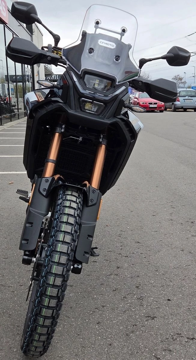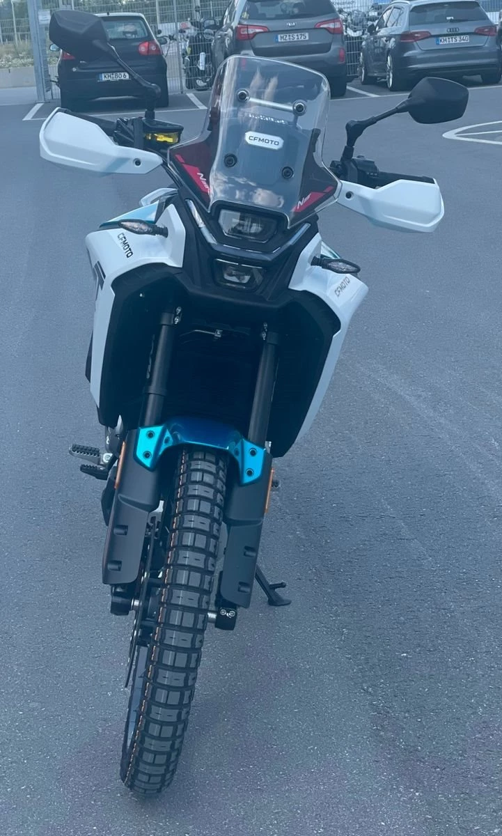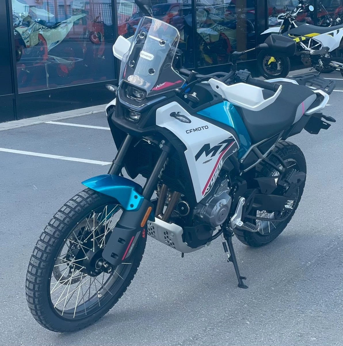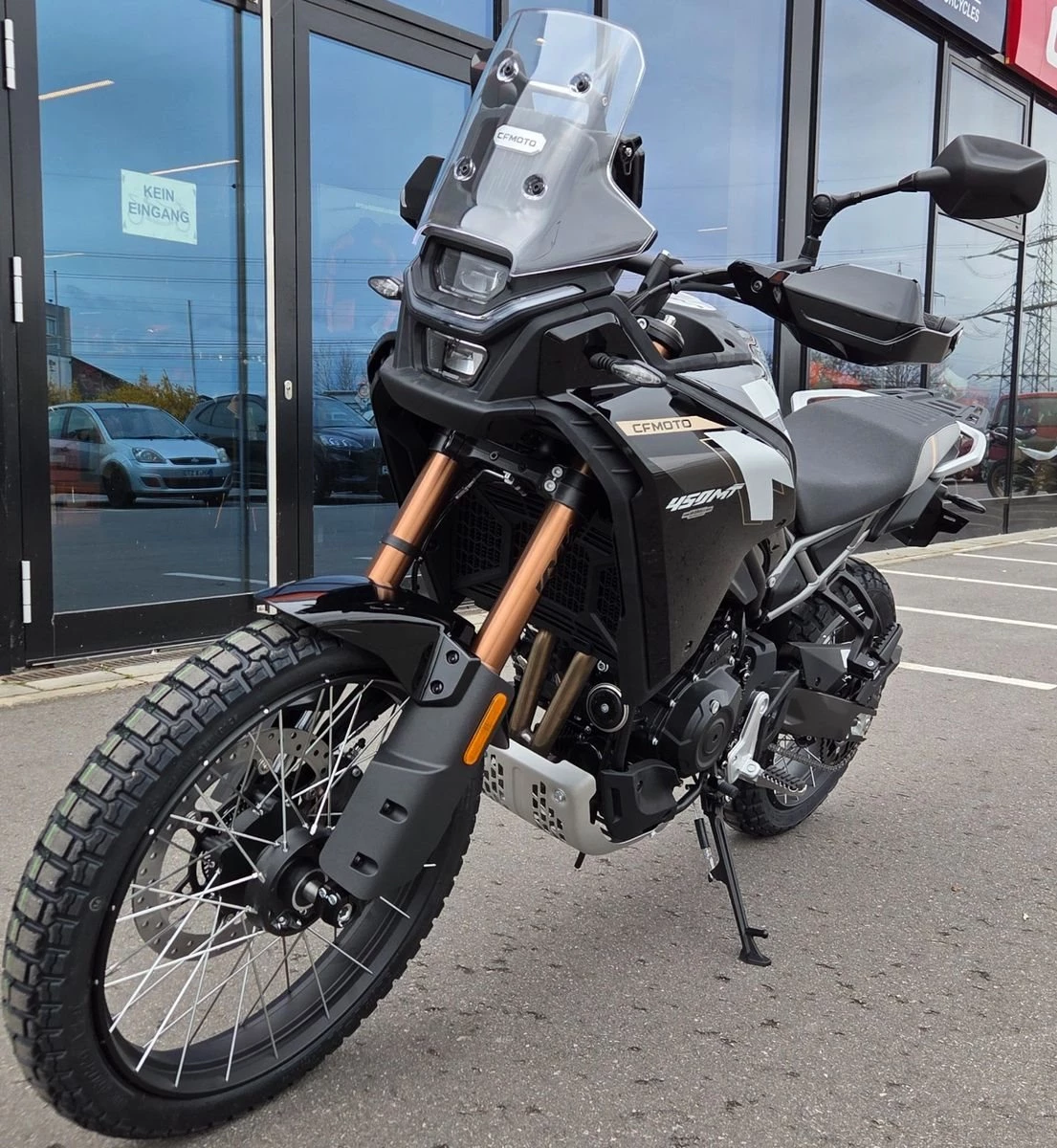 Die CFMOTO 450MT liefert mit ihrer Kombination aus hervorragender Geländegängigkeit und unu?bertroffener Vielseitigkeit eine neue Definition von Adventure-Touring. Ausgestattet mit modernster Technologie und hochwertigen Komponenten zieht die 450MT alle Register - ob in unwegsamen Gelände oder auf anspruchsvollen Landstraßen. Ausgestattet mit einem 449 cm Zweizylinder-Motor, liefert die 450MT satte 42 PS und ein maximales Drehmoment von 42 Nm. Das voll einstellbare KYB-Fahrwerk mit großem Federweg, der Reifendrucksensor, ABS mit abschaltbarer Hinterradfunktion und TCS sorgen für perfekte Kontrolle - egal ob du auf Schotter, in der Stadt oder auf kurvigen Landstraßen unterwegs bist.