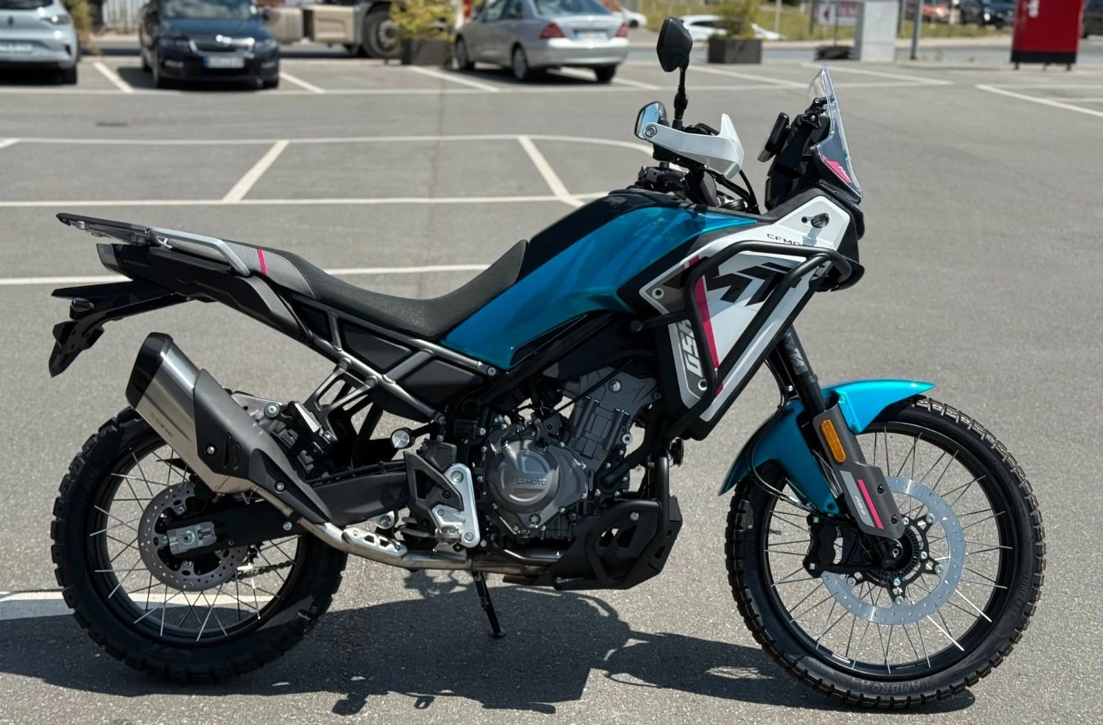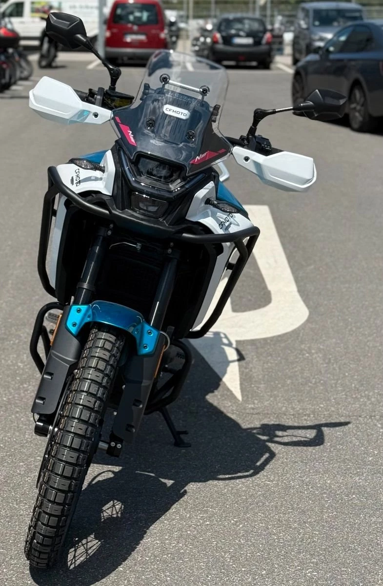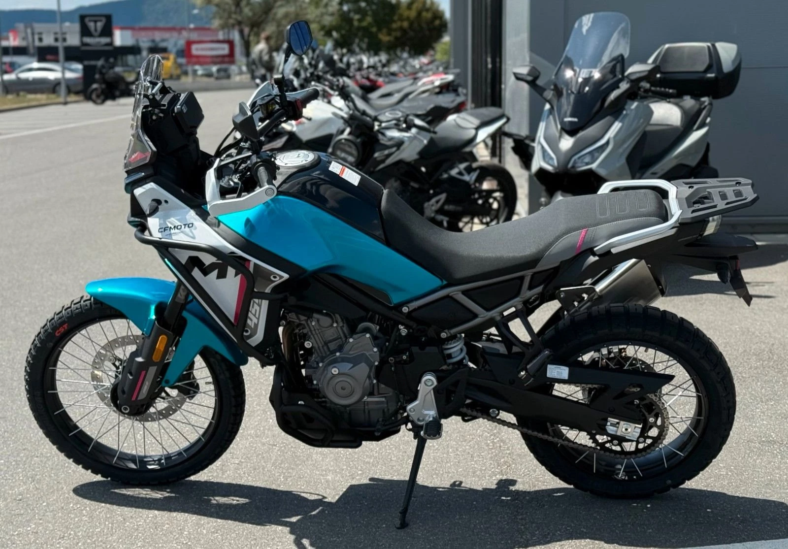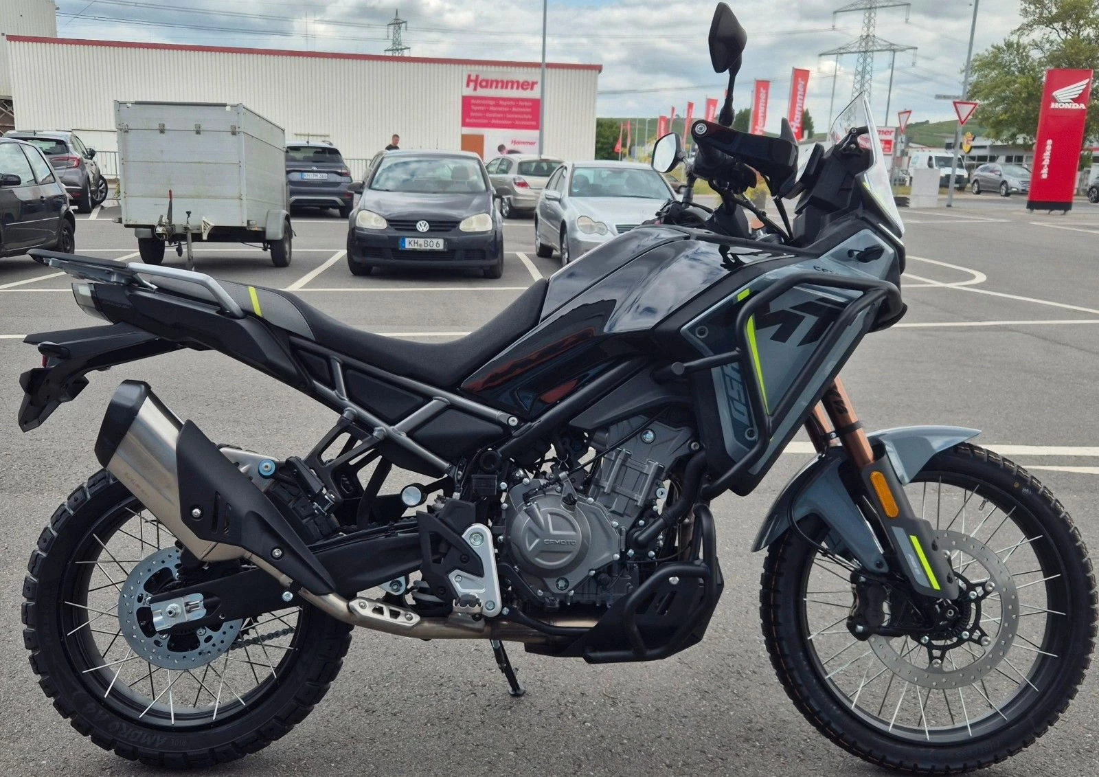 Die CFMOTO 450MT liefert mit ihrer Kombination aus hervorragender Geländegängigkeit und unu?bertroffener Vielseitigkeit eine neue Definition von Adventure-Touring. Ausgestattet mit modernster Technologie und hochwertigen Komponenten zieht die 450MT alle Register - ob in unwegsamen Gelände oder auf anspruchsvollen Landstraßen. Ausgestattet mit einem 449 cm Zweizylinder-Motor, liefert die 450MT satte 42 PS und ein maximales Drehmoment von 42 Nm. Das voll einstellbare KYB-Fahrwerk mit großem Federweg, der Reifendrucksensor, ABS mit abschaltbarer Hinterradfunktion und TCS sorgen für perfekte Kontrolle - egal ob du auf Schotter, in der Stadt oder auf kurvigen Landstraßen unterwegs bist.