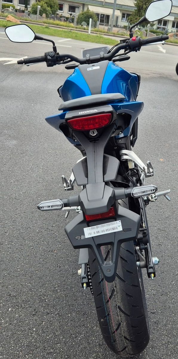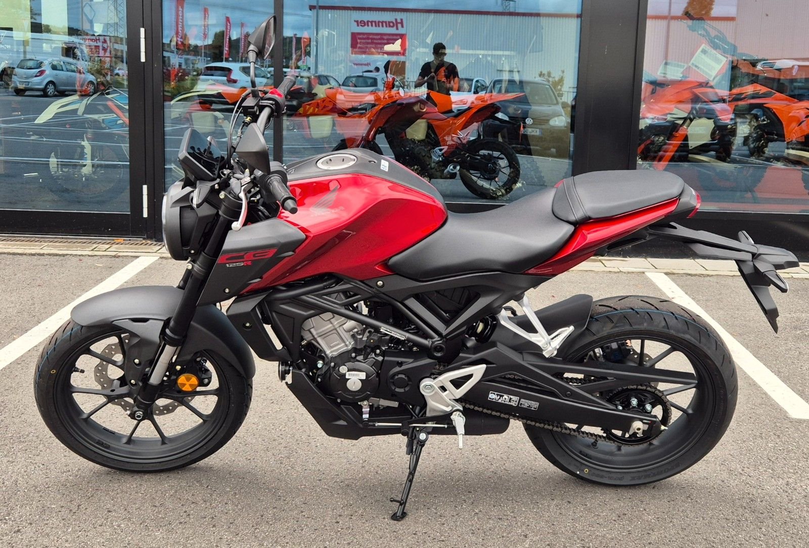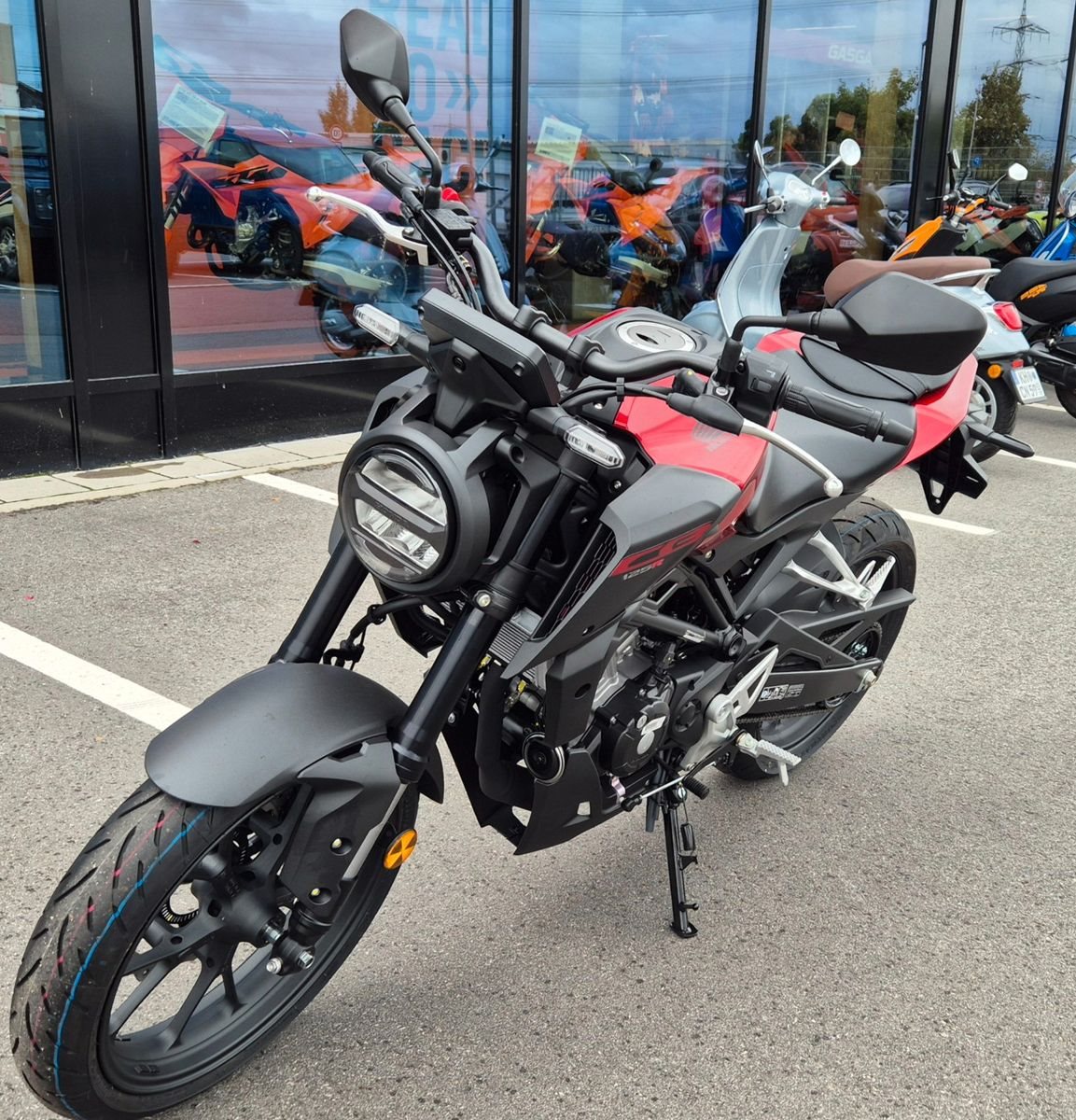 Die CB125R vereint konzentrierte Leistung mit einer eleganten Silhouette und bietet ein aufregendes Fahrerlebnis für junge Fahrer. Sie ist die kleine Schwester der genialen CB1000R und gehört damit zur Neo Sports Café-Familie. Das markante Design mit dem Stahlrohrrahmen ist ein echtes Statement. Ein hochmodernes LCD-Cockpit und LED-Komplettbeleuchtung sind Premium-Merkmale. Aber worauf es wirklich ankommt, ist die zusätzliche Leistung des neuen 125-cm-DOHC-Motors und die präzise Abstimmung der Showa SFF-BP USD-Gabel.