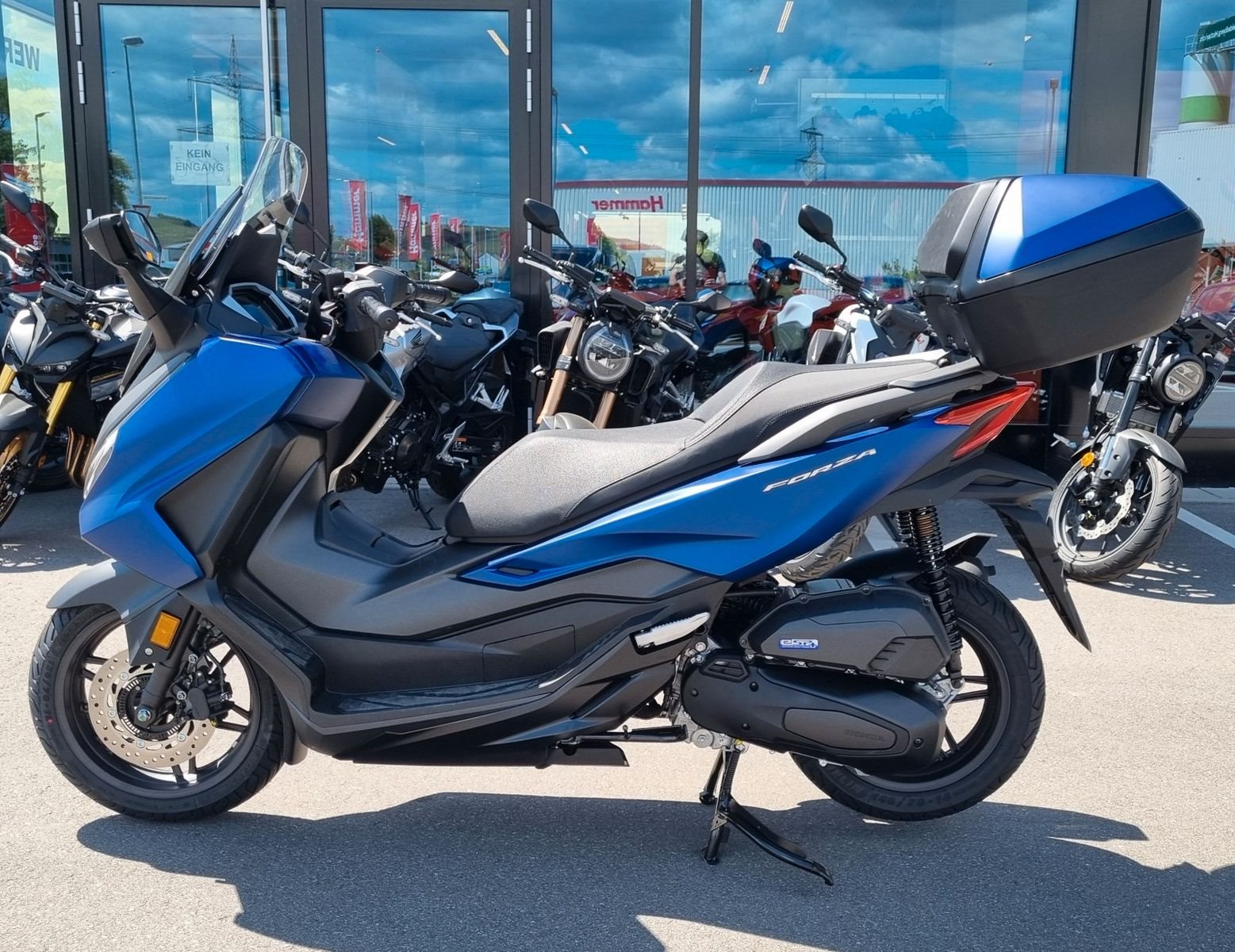Suchst du das Beste? Du hast es gefunden. Der Forza 125 ist unser Premium-Sport-GT-Roller, der alles bietet, was du brauchst und noch mehr. Erlebe die hervorragende Kraftstoffeffizienz und die beeindruckende Reichweite des eSP+-Motors, der in seiner Klasse führend ist. Ausgestattet mit einem 5-Zoll TFT-Display und der Honda RoadSync-Integration ist der Forza 125 wie geschaffen für das Stadtleben. Verwalte mühelos Telefonanrufe, Musik und Navigation auf einem Roller, der mit deinem urbanen Lebensstil mithalten kann