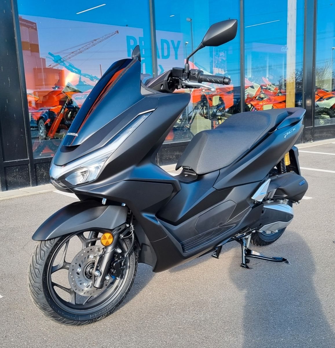 Das ist der PCX125. Aber besser. Angetrieben von einem flüssigkeitsgekühlten 4V-Motor, der eine ruhige Beschleunigung liefert und dabei einen erstaunlich niedrigen Kraftstoffverbrauch aufweist. Das intelligent aktualisierte Styling besticht durch futuristische Linien und einen noch umfassenderen Windschutz, aber auch durch eine aktualisierte Scheibenbremse am Hinterrad für verbesserte Bremsleistung. Der neue PCX125 DX verfügt über einen 5-Zoll TFT-Bildschirm mit Honda RoadSync-Smartphone-Konnektivität und intuitiver Lenker-Bedienung sowie über eine aktualisierte hintere Untertankaufhängung für eine noch ruhigere Fahrt in der Stadt.