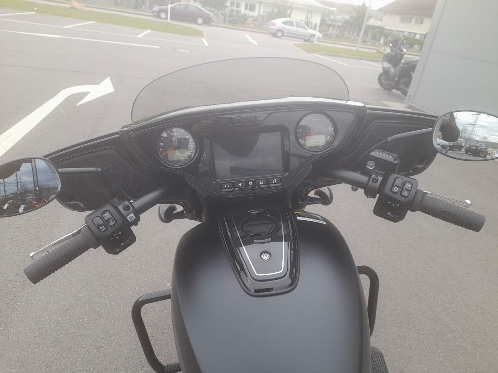 ERSTKLASSIGE AUSSTATTUNG Die Chieftain ist serienmäßig mit LED-Beleuchtung, schlüsselloser Zündung, Tempomat, elektrisch verschließbaren Seitenkoffern, ABS und Reifendruckkontrolle ausgestattet. 7-Zoll-Touchscreen mit RIDE COMMAND inkl. Apple CarPlay-Integration; elektrische Windschutzscheibe; Highway Bars; Vinyl-Rogue-Sitz; Reifendrucküberwachung; fernbedienbare Hard Saddlebags; wählbare Fahrmodi; Deaktivierung des hinteren Zylinders; ABS; Tempomat; schlüssellose Zündung; 100-Watt-Audiosystem mit AM/FM, Bluetooth, USB, Smartphone-kompatiblem Eingang; 12-V-Ladeanschluss