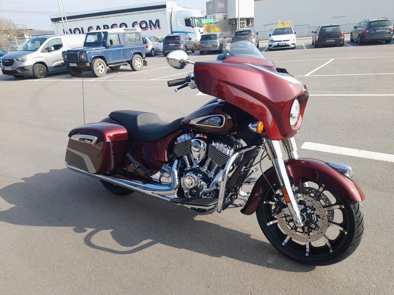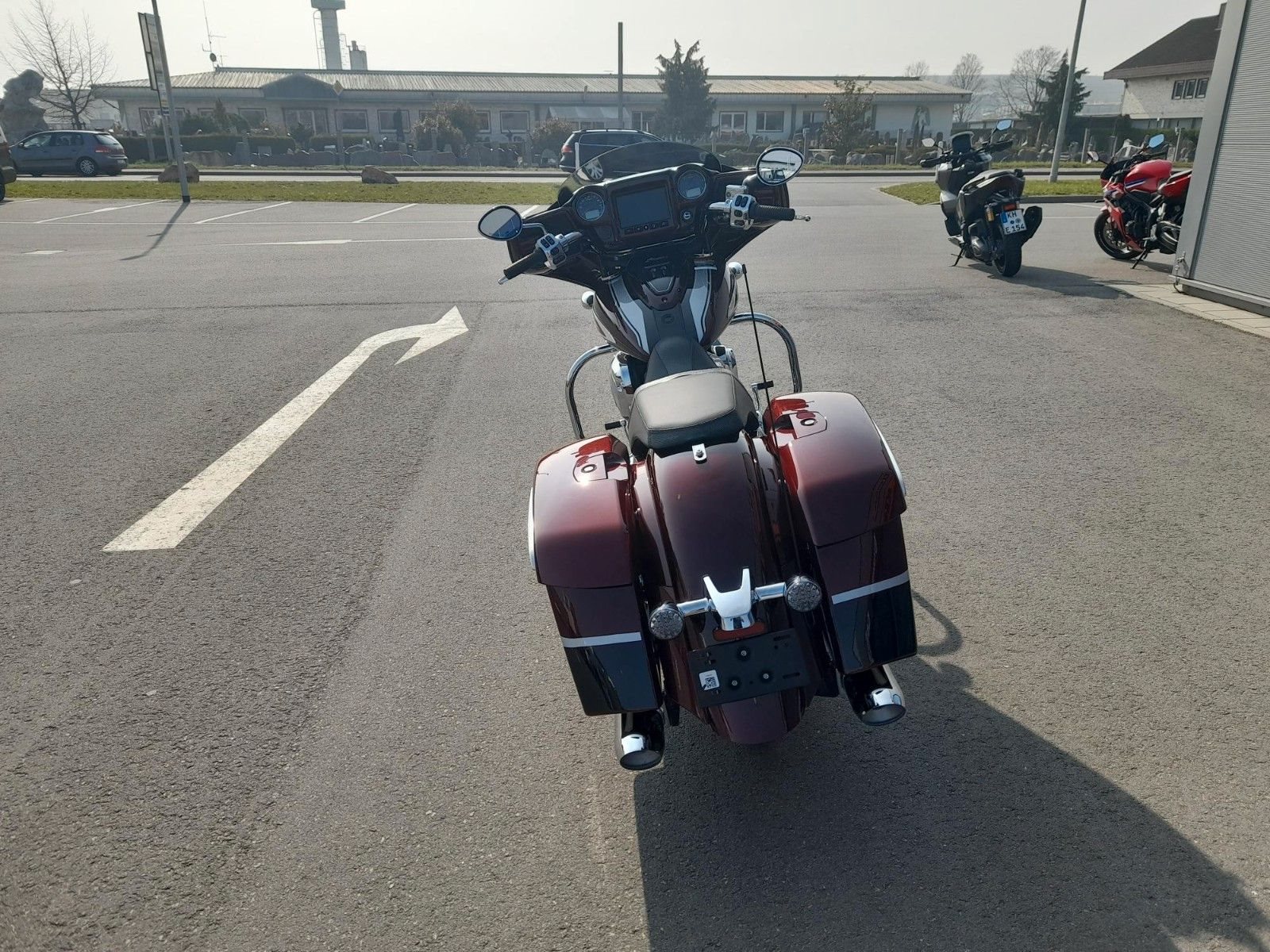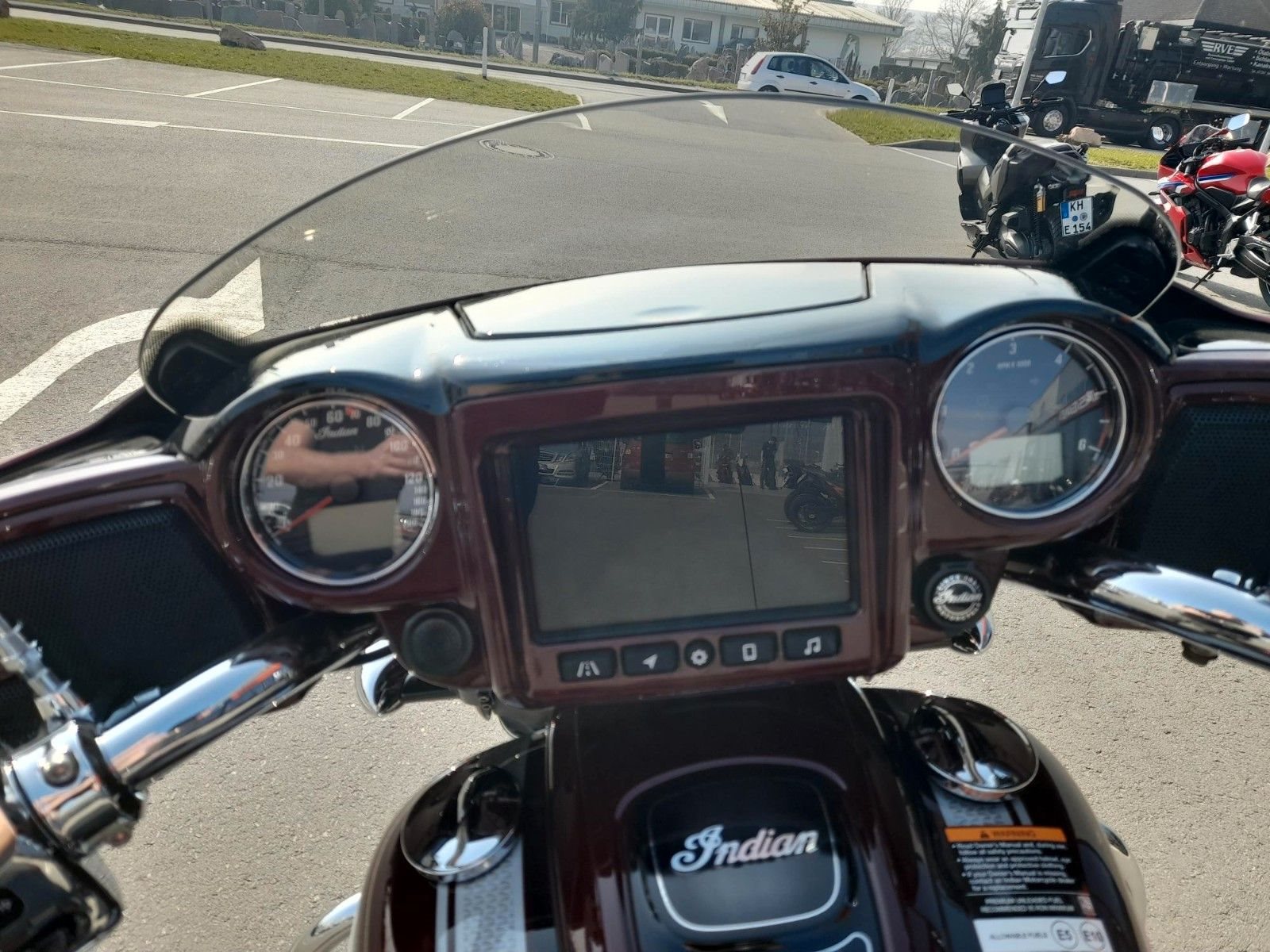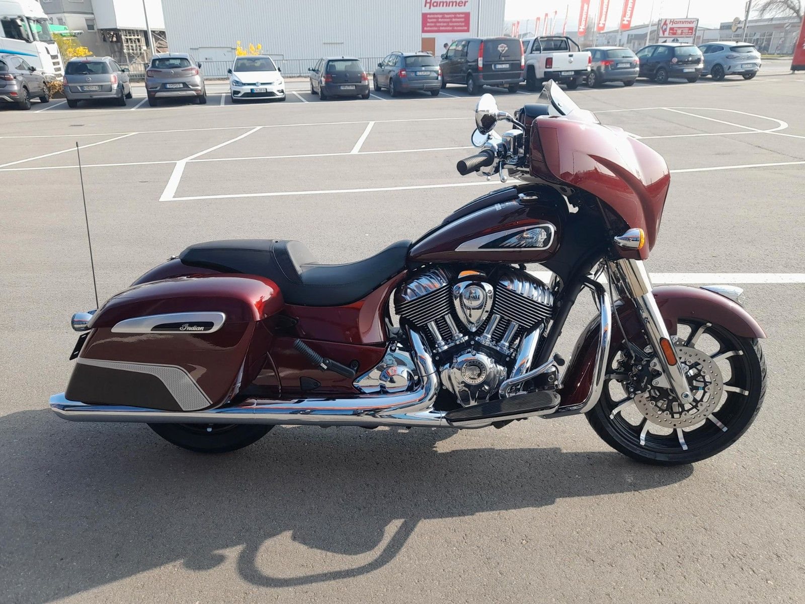 ERSTKLASSIGE AUSSTATTUNG Die Chieftain Limited ist serienmäßig mit LED-Beleuchtung, schlüsselloser Zündung, Tempomat, elektrisch verschließbaren Seitenkoffern, ABS und Reifendruckkontrolle ausgestattet. 7-Zoll-Touchscreen mit RIDE COMMAND inkl. Apple CarPlay-Integration; elektrische Windschutzscheibe; Highway Bars; Vinyl-Rogue-Sitz; Reifendrucküberwachung; fernbedienbare Hard Saddlebags; wählbare Fahrmodi; Deaktivierung des hinteren Zylinders; ABS; Tempomat; schlüssellose Zündung; 100-Watt-Audiosystem mit AM/FM, Bluetooth, USB, Smartphone-kompatiblem Eingang; 12-V-Ladeanschluss