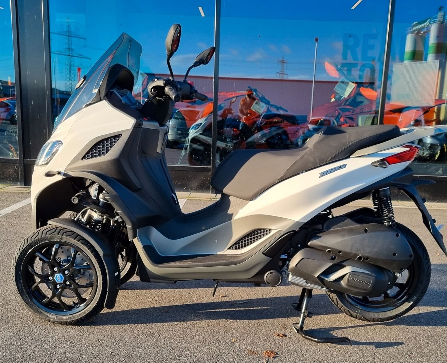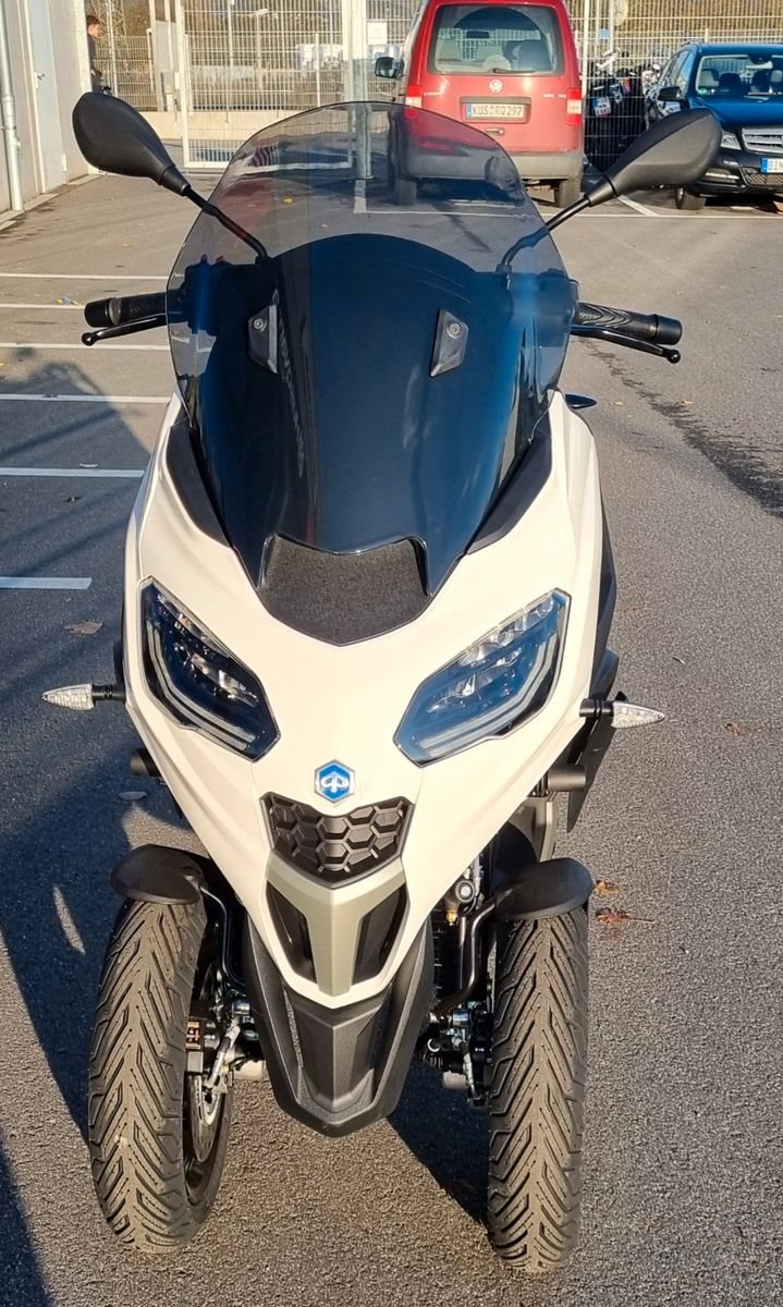 Sport & Go.Sein Design ist modern und sportlich. Nahtlos geht die markante Front in die schlanke Silhouette zum Heck über. Auffällig, die beiden Leichtmetall-Vorderräder unter den in Fahrzeugfarbe lackierten, leichten Radabdeckungen. Schön anzusehen und sicher, die beiden Scheinwerfer mit integriertem Tagfahrlicht in LED-Technik. Neben den beiden klassischen Rundinstrumenten sorgt ein großes Multifunktions-LCD-Display für alle wichtigen Informationen und mehr. Agil und handlich ist der MP3 310 Sport ein echter Cityflitzer, den Sie auch im Kurvenlabyrinth der Landstraßen genießen werden.