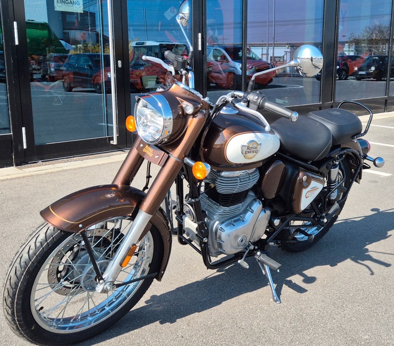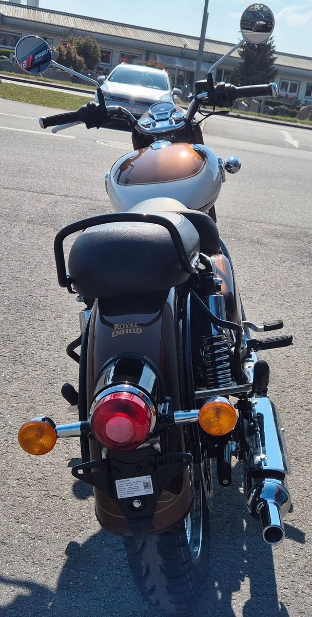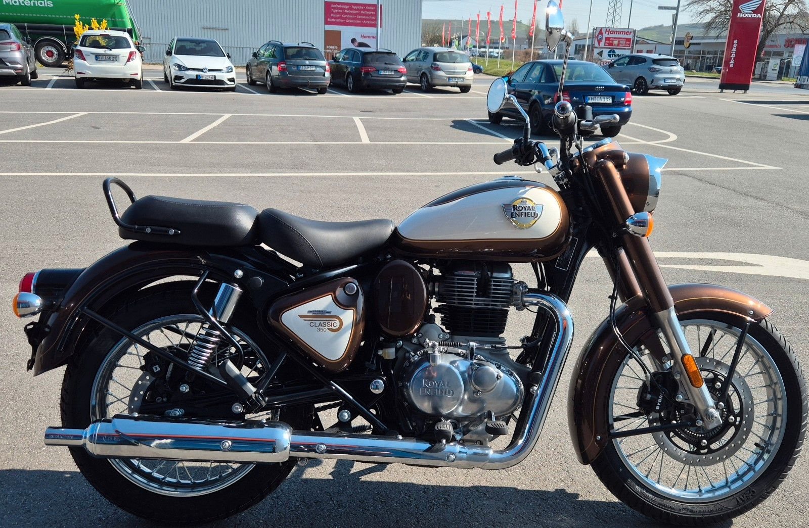Zeitloser Klassiker. Die neue Classic 350 verkörpert gleicherweise Tradition und die Handwerkskunst der Vergangenheit, wie auch die Wiedergeburt durch die neue J Plattform. Inspiriert vom Nachkriegsmodell G2, das erstmals im Jahre 2008 entstand, schafft es die Classic 350 im Jahr 2021 weiterhin zeitlos ästethisch zu sein. Die geschwungenen Kotflügel und der tropfenförmige Kraftstofftank, die charakteristischen Kassettenscheinwerfer, die einzigartige Lackierung und der unverwechselbare Klang der aus dem Auspuff ertönt harmonieren in sich und machen dieses Meisterwerk zu dem was es ist - eine zeitlose Royal Enfield Classic. Elegant, mit einem glänzenden Finish, das eine außergewöhnliche Kontrusktion ziert, strahlt sie unübertroffene Schönheit und Qualität aus, die die Zeit überdauert.