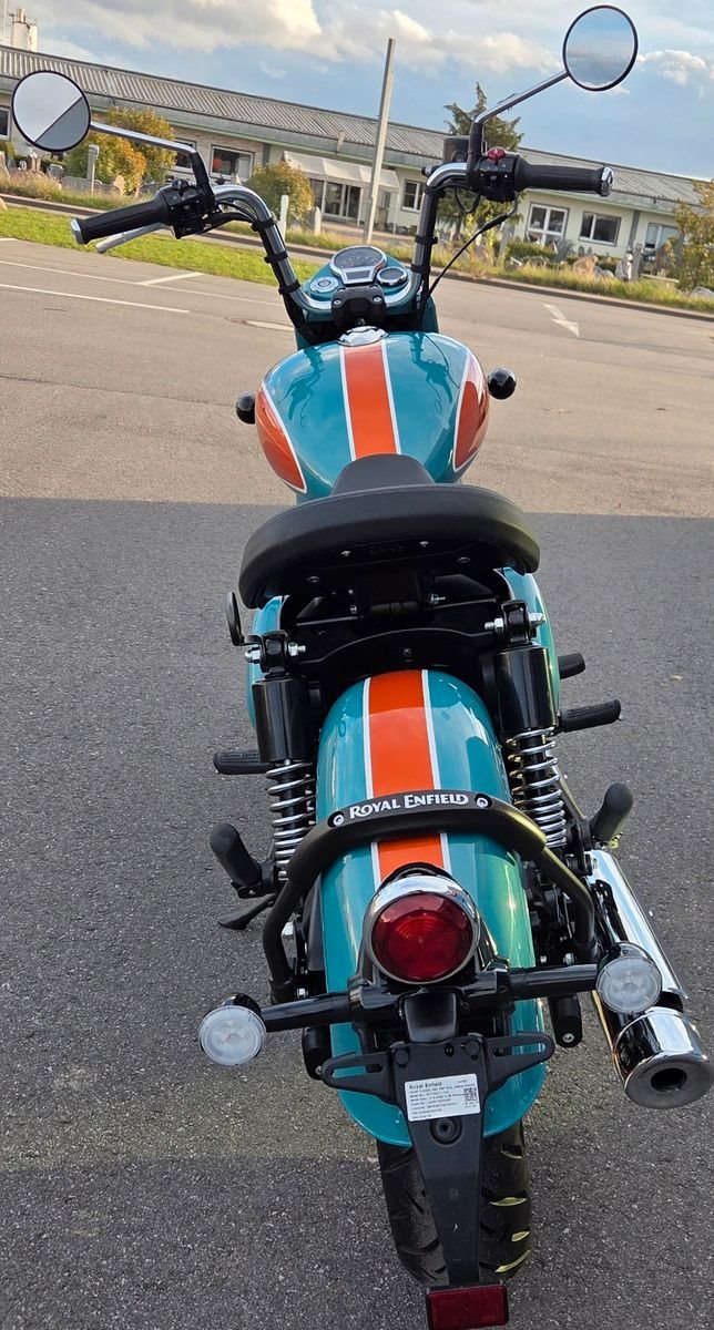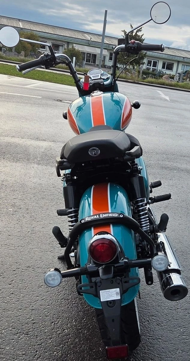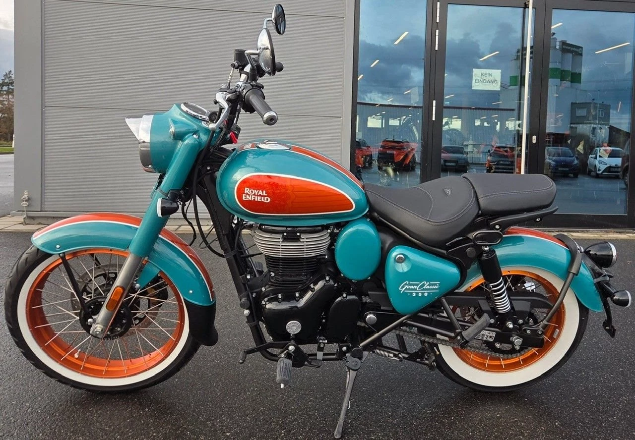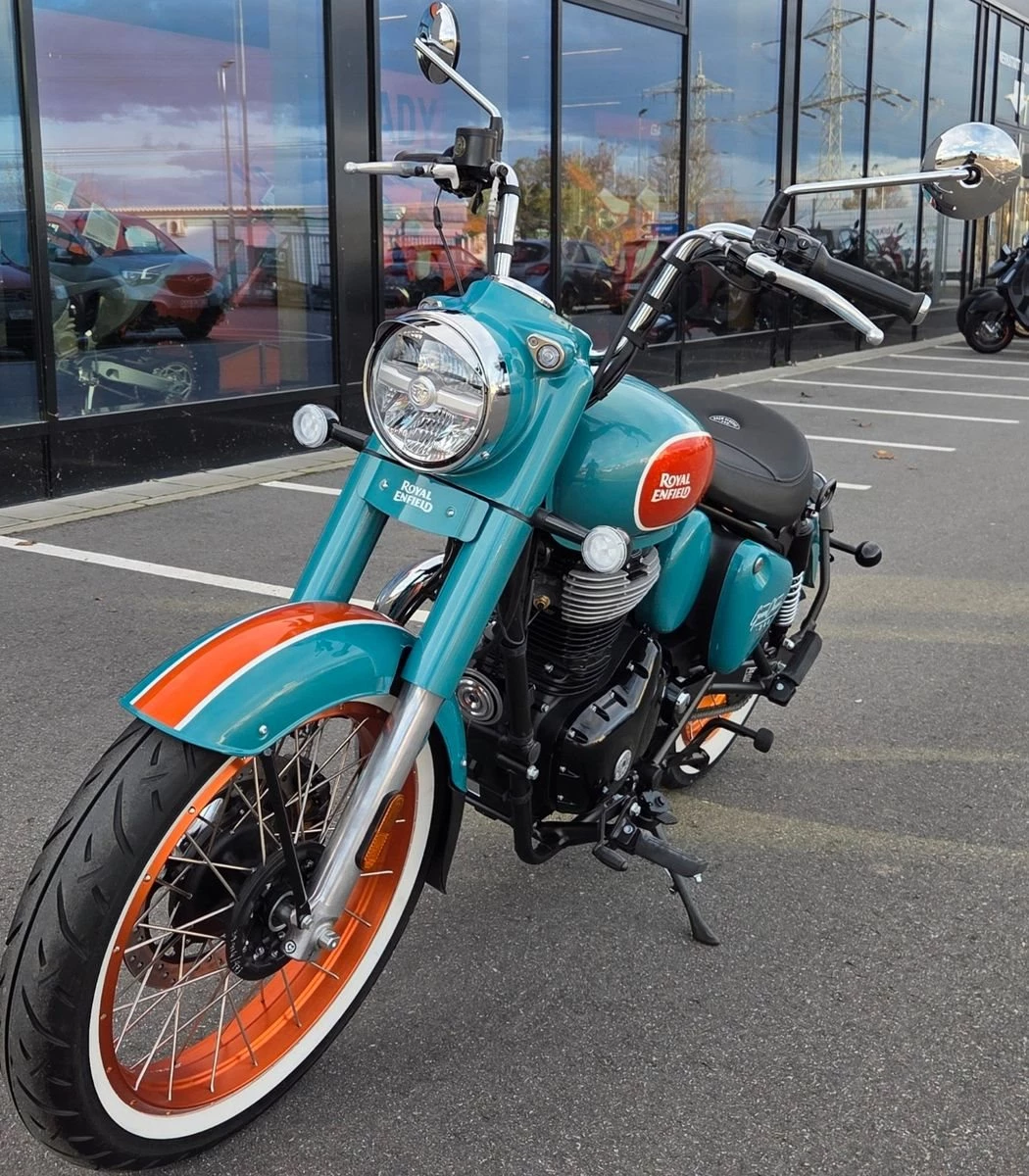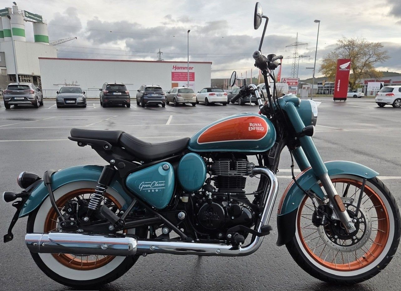 Goan Classic 350 Technische SpezifikationenDie Seele eines Hippies. Der Körper eines Bobbers. Der Goan Classic 350 ist für einfache, mühelose Fahrten vom Strand zur Hütte und zurück konzipiert. Der Goan Classic 350 wird von unserem 349-cm-J-Plattform-Motor angetrieben, der ihm seinen charakteristischen Auspuff verleiht. Mit einem maximalen Drehmoment von 27 Nm und einer maximalen Leistung von 20,2 PS sorgt er für sanfte Beschleunigung und müheloses Fahren in der Stadt, entlang der Küste oder bergauf.
