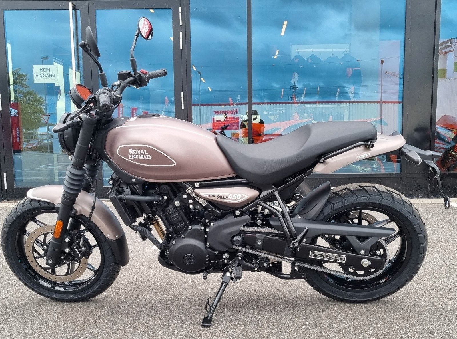 Die Guerrilla 450 beeindruckt mit ihrem Design - ohne jede Ablenkung. Kein auffälliger Schnickschnack. Kein sinnloses Plastik. Ihre athletischen Formen weisen an genau den richtigen Stellen perfekte Winkel, zweckmäßige Kanten und kraftvolle Linien auf. Ein Motorrad, das so gut aussieht wie es sich fährt.