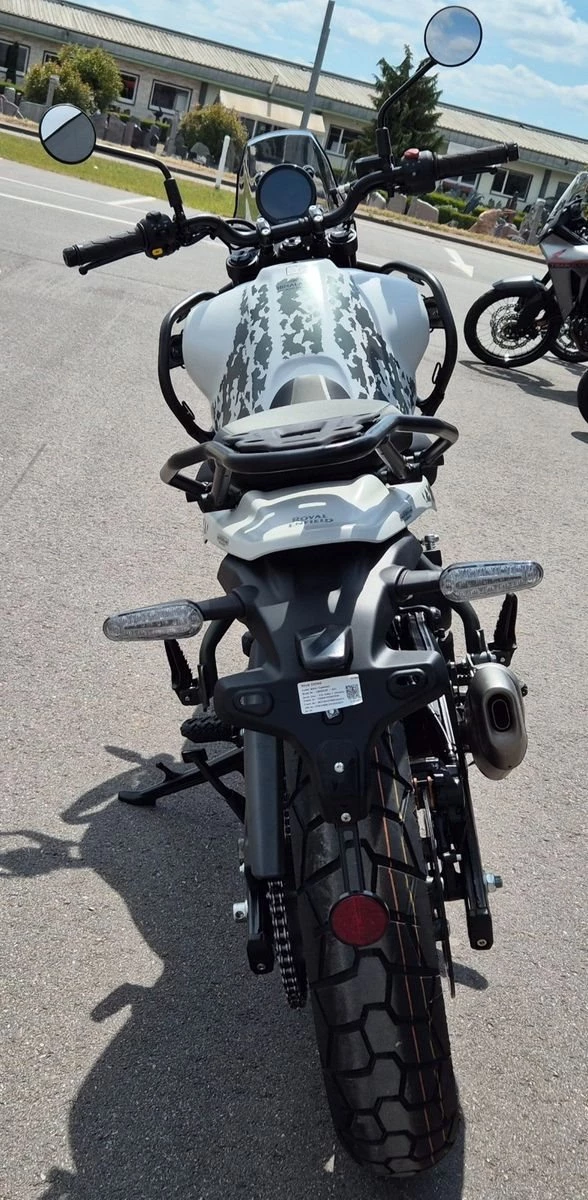 PERFEKT FÜR JEDES ABENTEUER Der beste Motorradrahmen ist einer, der sich dezent im Hintergrund hält. Von der flexiblen Bereifung mit 21 Zoll großem Vorderrad und 17 Zoll großem Hinterrad über trittsichere Enduro-Fußrasten bis hin zu ihrem breiten Lenker - die Himalayan ist für alles gerüstet, auf der Straße und im Gelände. Die schlanke Sitzbank und der schmale Tank sorgen dafür, dass beide Füße fest auf dem Boden zu stehen kommen.