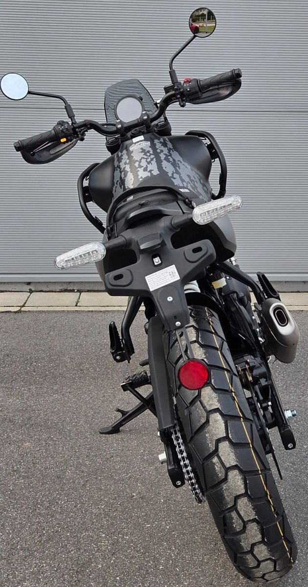 PERFEKT FÜR JEDES ABENTEUER Der beste Motorradrahmen ist einer, der sich dezent im Hintergrund hält. Von der flexiblen Bereifung mit 21 Zoll großem Vorderrad und 17 Zoll großem Hinterrad über trittsichere Enduro-Fußrasten bis hin zu ihrem breiten Lenker - die Himalayan ist für alles gerüstet, auf der Straße und im Gelände. Die schlanke Sitzbank und der schmale Tank sorgen dafür, dass beide Füße fest auf dem Boden zu stehen kommen.