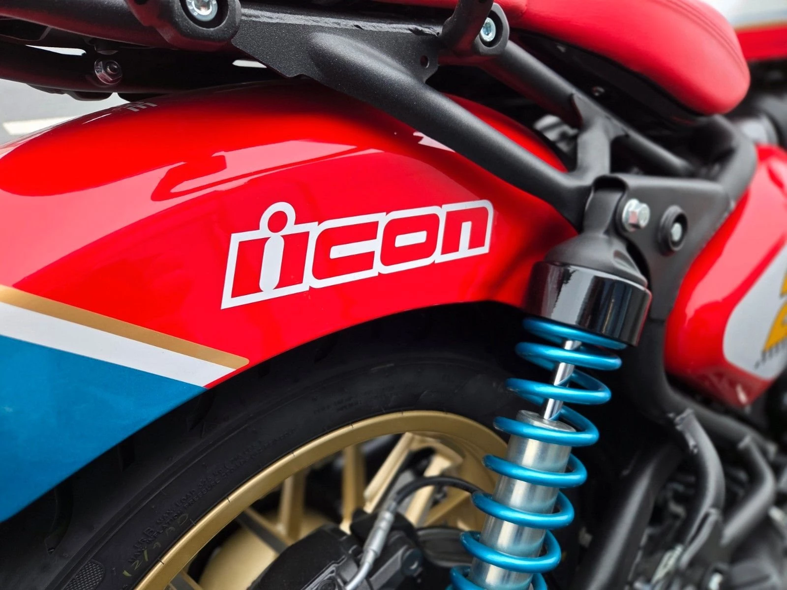 Die Royal Enfield Shotgun 650 Icon Edition, inspiriert vom "Always Something"-Custom-Bike von ICON Motosports, ist ein streng limitiertes Sondermodell (nur 100 Stück weltweit). Sie zeichnet sich durch eine 3-Ton-Lackierung, goldene Felgen, blaue Federn und einen roten Sitz aus. Die technische Basis bleibt der 648ccm-Zweizylinder.