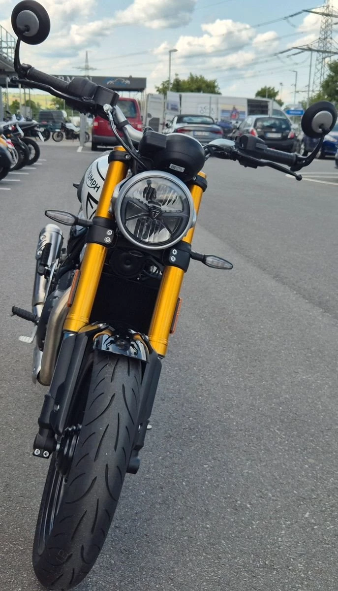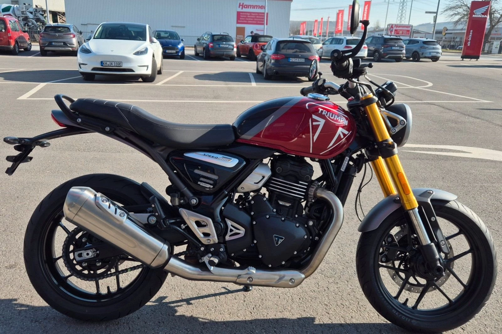 Der neue Einzylindermotor der TR-Serie wurde nach dem Vorbild legendärer Triumph-Motorräder aus der Vergangenheit entwickelt und mit modernsten Technologien ausgestattet, um eine voll nutzbare, charaktervolle Leistung mit spontanem Ansprechverhalten und erstklassiger Performance zu entfalten.Die Sitzposition ist neutral und vermittelt dabei ein mitreißendes Fahrerlebnis bei niedriger Sitzhöhe. In Kombination mit dem speziell abgestimmten Roadster-Fahrwerk, der hochwertigen Aufhängung und den erstklassigen Bremsen ergibt sich das für Triumph charakteristische, agile und souveräne Handling, mit dem Fahrer jeden Könnens die dynamische Performance der Speed 400 voll auskosten können.Die hervorragende Verarbeitung und die Liebe zum Detail, die jeden modernen Klassiker von Triumph auszeichnen, finden sich auch bei der Speed 400 wieder. Von den charakteristischen schwarz pulverbeschichteten Motorgehäusen bis hin zur satten Lackierung - die Speed 400 ist unverkennbar eine Triumph und ein echter moderner Klassiker.