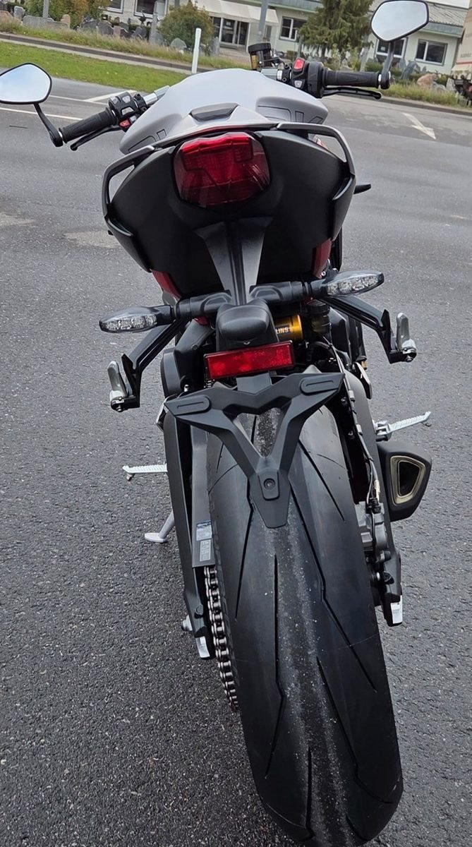 Ausgestattet mit einstellbarer Öhlins NIX Upside-Down-Gabel und STX40 Federbein, Stummellenker und rennstreckentauglichen Komponenten für präzises Handling.