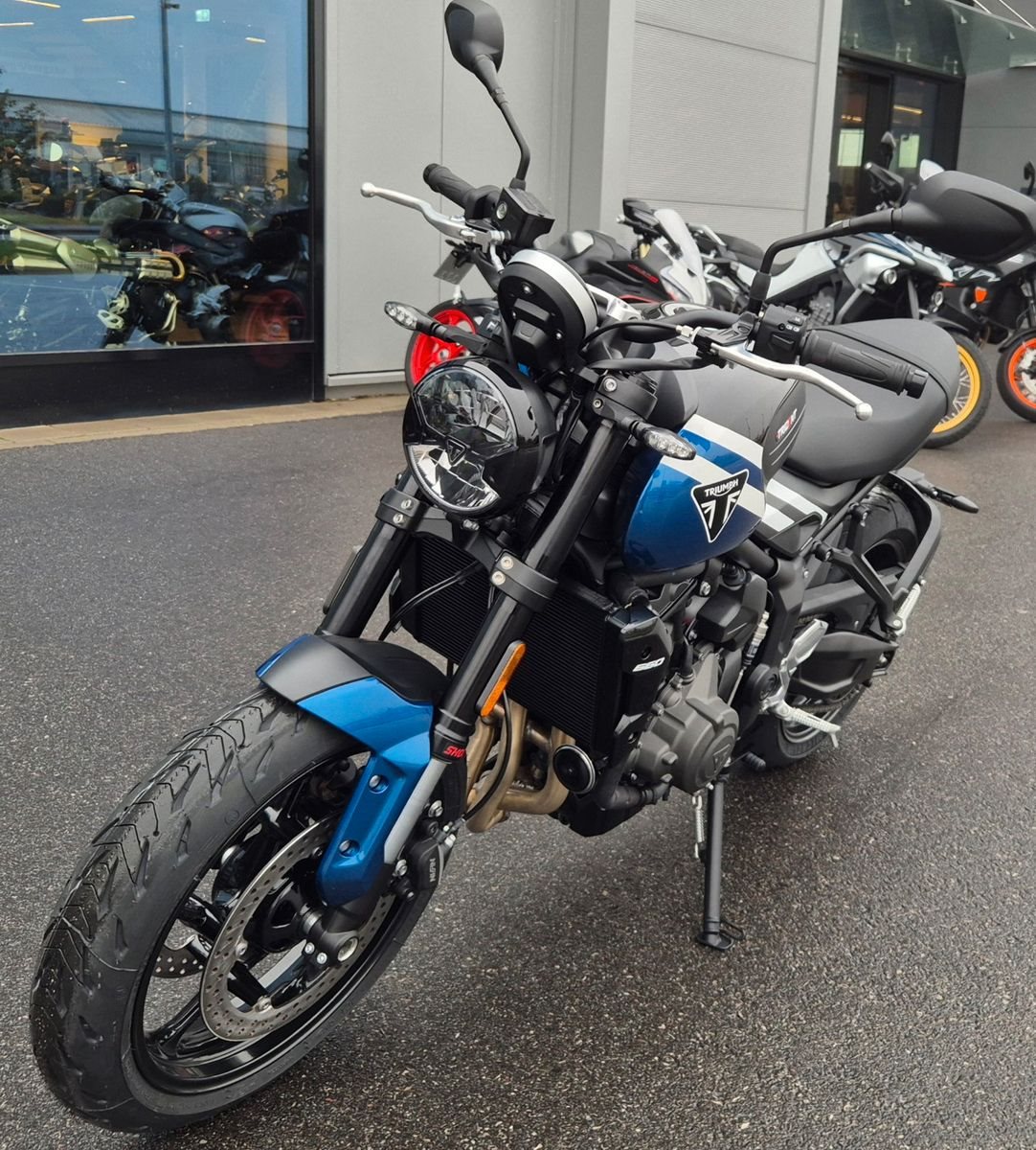 Das in ihrer Klasse unerreichte Maß an Technologie zur Optimierung des Fahrerlebnisses ist jetzt serienmäßig. Dazu gehören die 3 Fahrmodi, darunter ein aufregender neuer Sportmodus, ein Tempomat, optimiertes Kurven-ABS und Traktionskontrolle, sowie der Triumph Shift Assist für kupplungsloses Hoch- und Runterschalten. Die Bluetooth-Konnektivität sorgt für eine Turn-by-Turn-Navigation und volle Telefonfunktionalität und bietet so einen unvergleichlichen Fahrerkomfort.