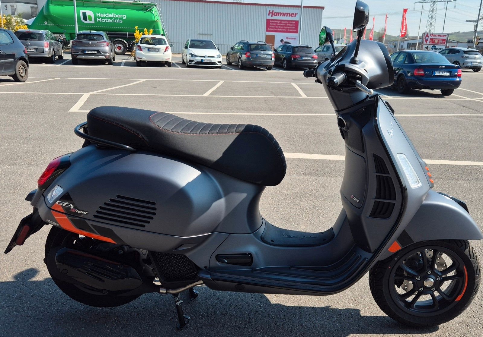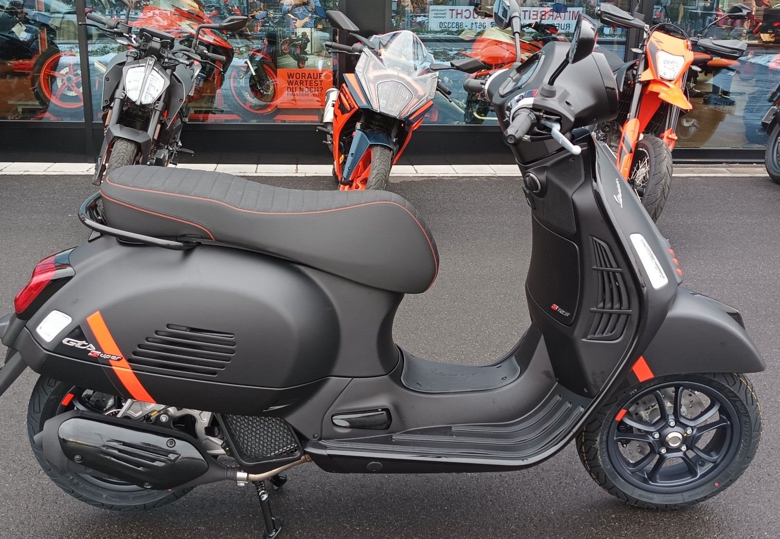 Die richtige Ausstrahlung für jede HerausforderungDie Vespa Gts SuperSport überzeugt durch ihre glänzenden und matten Farben, die durch Details im Carbon-Look und glänzend schwarze Zierleisten ergänzt werden. Die Sitzbank mit hochwertigen Materialien und Kontrastnähten unterstreicht ihren starken Charakter. Mit der Vespa Gts SuperSport wird jeder Tag zu einem aufregenden Abenteuer.