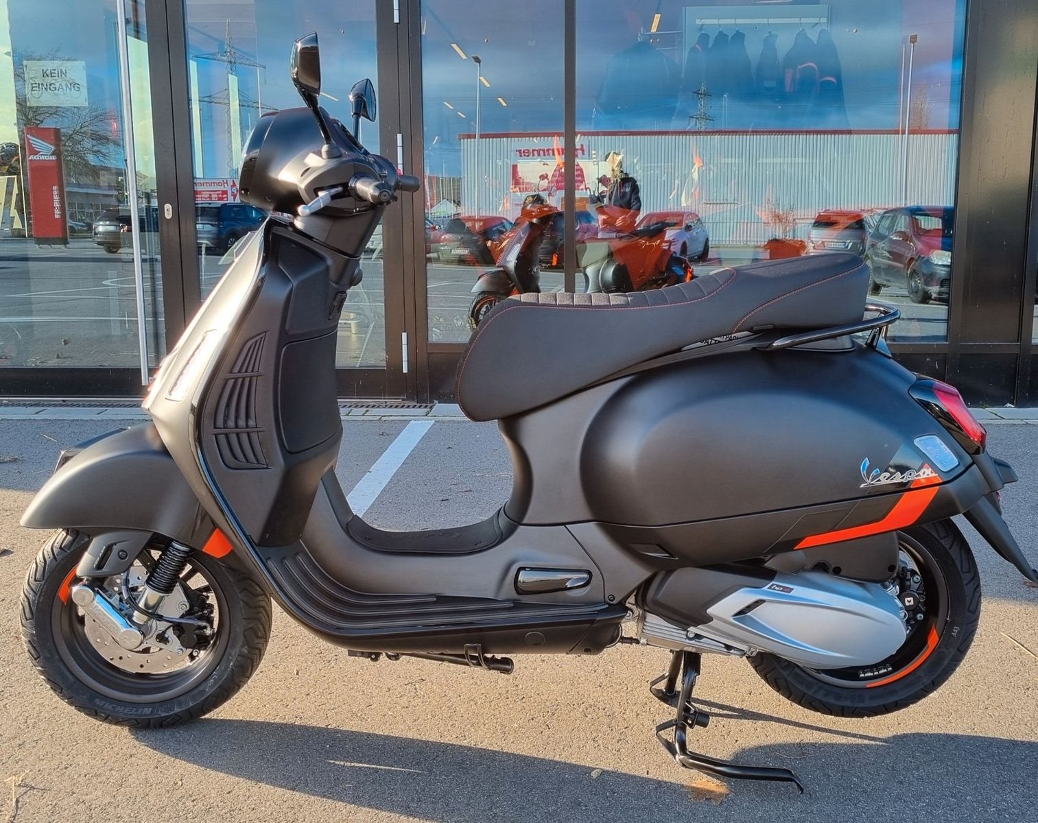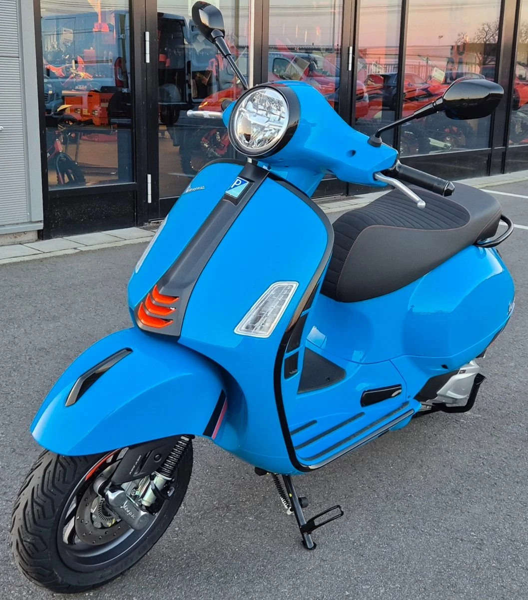 Sportliche Spitzenleistung der VespaFür hohe Leistung und ein sportliches Fahrverhalten sorgen der 310 cm3 Euro 5+ hpe Motor und das hochwertige Fahrwerk mit Stahlkarosserie, 12-Zoll-Felgen, Scheibenbremsen an beiden Rädern, hochwertigen Bremskomponenten, Zweikanal-ABS und ASR-Traktionskontrolle.