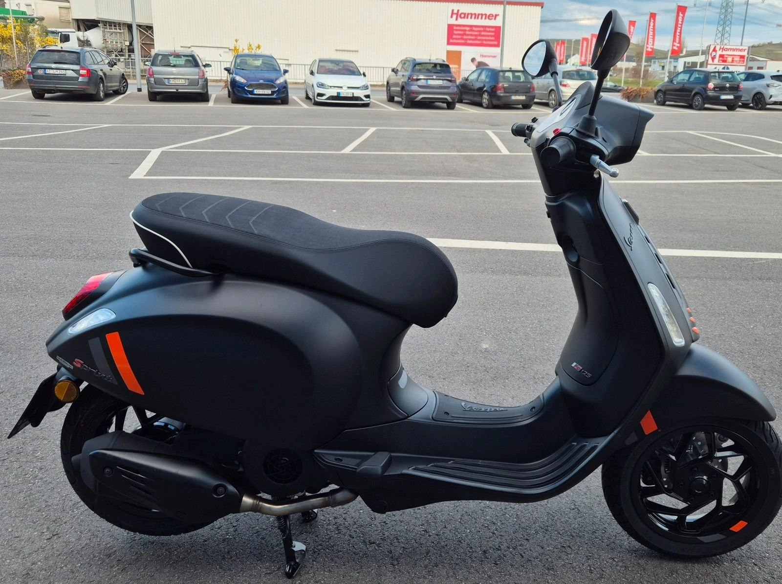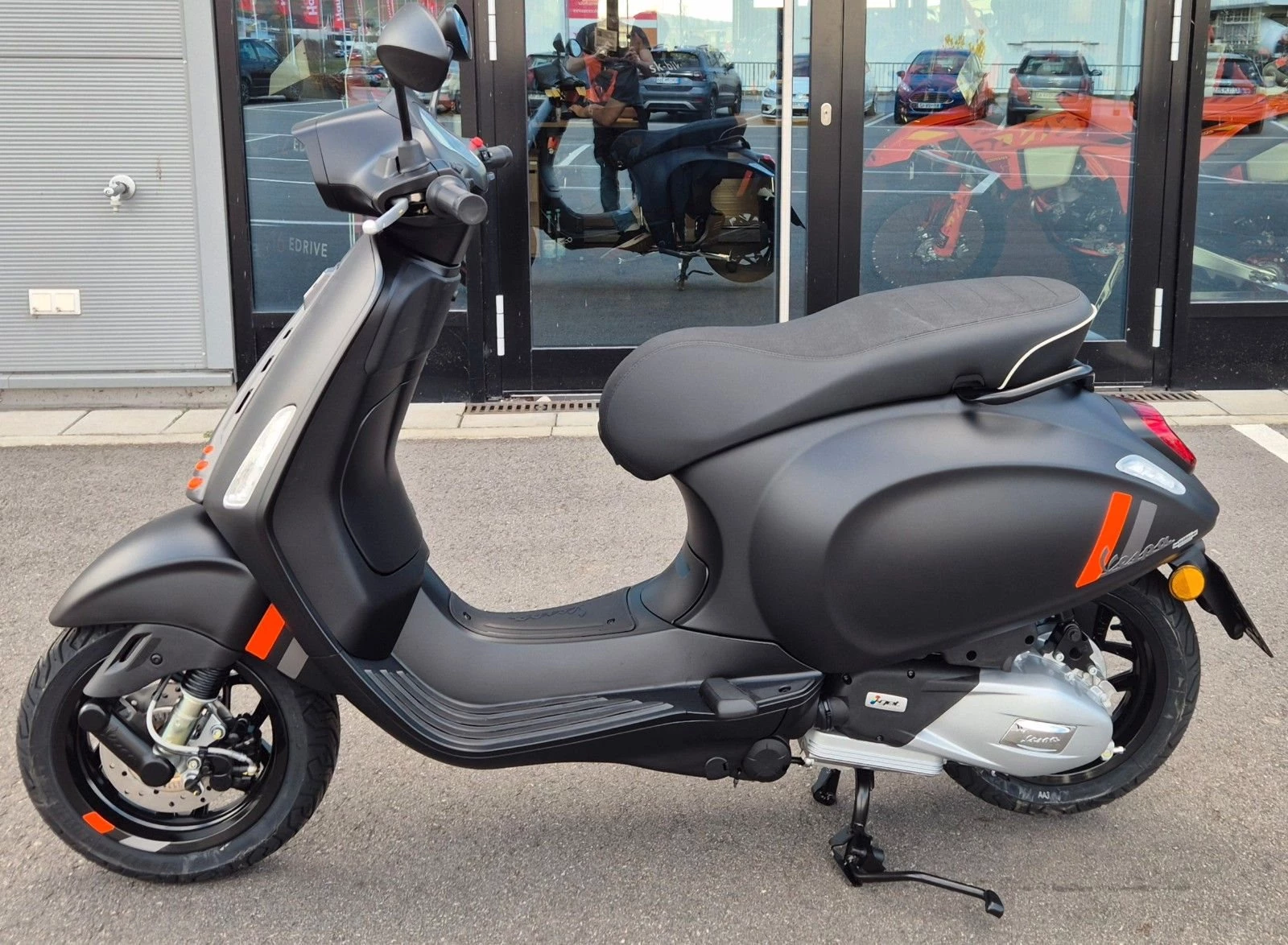 Ein faszinierender LookDie Vespa S Sprint verkörpert den unverwechselbaren Charakter der Generationen von Vespa Sportmodellen, die in jedem Umfeld einen Hauch von Dynamik versprühen. Ihr sportlicher Look wird durch kontrastierende Grafiken unterstrichen, während schwarze Details wie der rechteckige Rahmen um den Scheinwerfer und die neu designten 6-Speichen-Aluminiumfelgen für eine raffinierte Note sorgen.