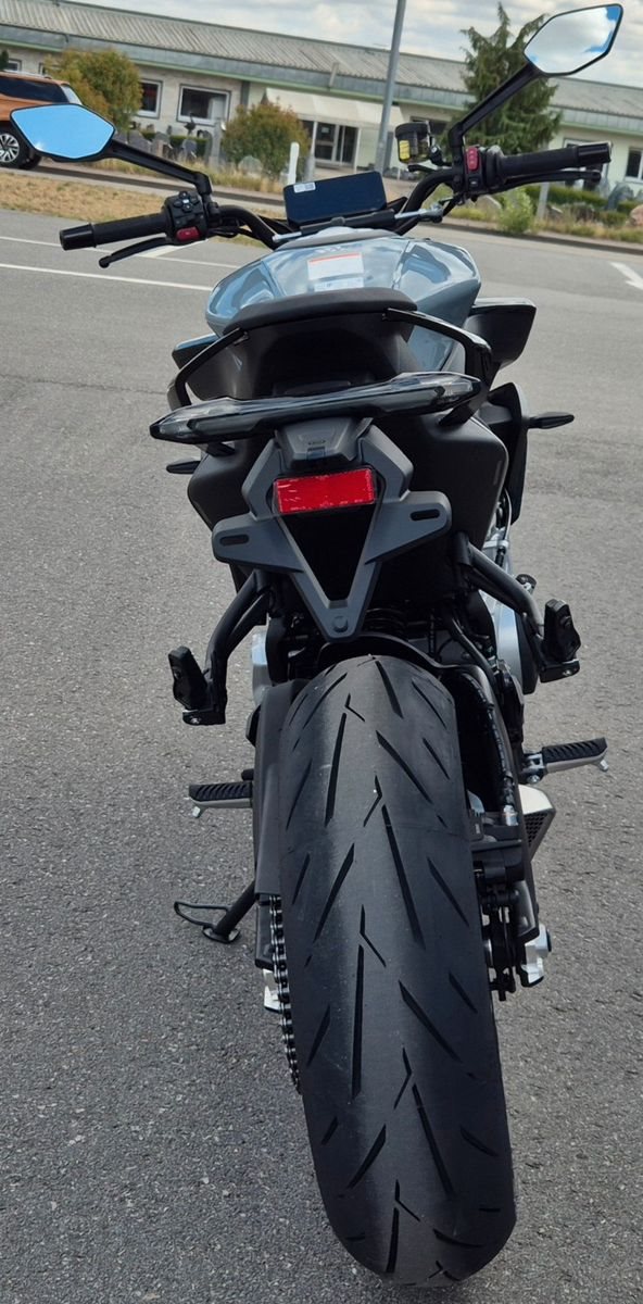 Kraftvolle Dreizylinder-Power, lineare Beschleunigung und extrem agiles Handling: Die neue CFMOTO 675NK ist das perfekte Naked Bike fu?r alle Liebhaber der sportlich ambitionierten Gangart. Dank modernster Technologie und einer kompakten Ergonomie liefert der neue Streetfighter eine beeindruckende Performance und zaubert dir in jeder Kurve ein breites Lächeln unter den Helm. Kantig, kraftvoll, kompromisslos - die 675NK ist ein Naked Bike mit Attitüde. Ihre aggressive Linienführung, die sportliche Sitzbank und die muskulöse Front machen sofort klar: Dieses Bike meint es ernst. Denn die 675NK kombiniert urbanen Style mit echter Racing-DNA - bereit, den Asphalt zu dominieren. Mit 674 cm Dreizylinder, satten 90 PS und 68 Nm Drehmoment ist die 675NK alles andere als zurückhaltend. Das voll einstellbare KYB-Fahrwerk, radial montierte 300-mm-Doppelscheibenbremsen und das präzise Handling garantieren Performance pur. Dazu kommt modernste Ausstattung, die deinen Puls hochhält.
