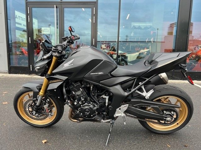 Die Hornet-Familie ist jetzt vollständig und unser Topmodell sticht heraus. Die neue CB1000 Hornet mit ihrem Vierzylindermotor ist ein erstklassiges Naked Bike, das den Asphalt zum Glühen bringt. Throttle By Wire sorgt für präzise Kontrolle, während das Fahrwerk mit der einstellbaren SHOWA 41mm SFF-BP Upside-Down-Gabel und dem Pro-Link-Federbein ausgestattet ist. Die unverfälschte, aggressive Streetfighter-Attitüde wird durch einen markanten LED-Doppelscheinwerfer unterstrichen. Das 5-Zoll TFT-Farbdisplay und die Honda RoadSync-Konnektivität sorgen für die nötigen Informationen. Kann es losgehen?