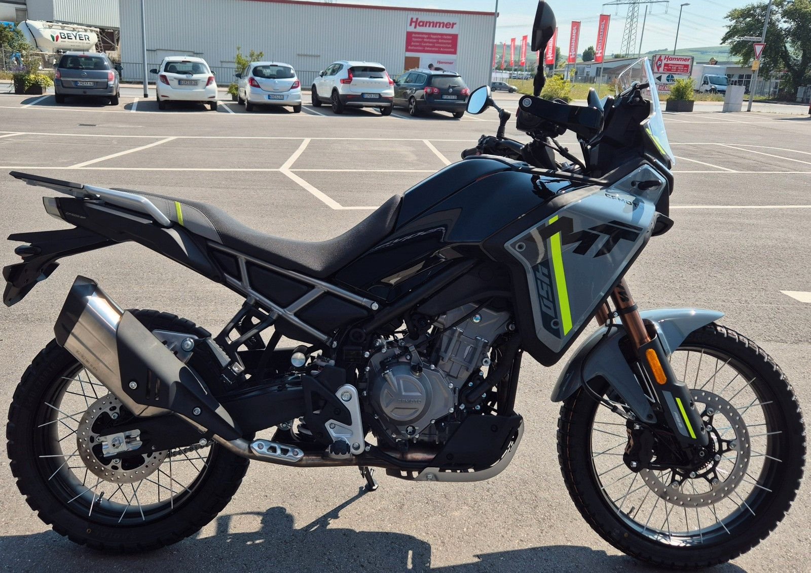 Die CFMOTO 450MT liefert mit ihrer Kombination aus hervorragender Geländegängigkeit und unu?bertroffener Vielseitigkeit eine neue Definition von Adventure-Touring. Ausgestattet mit modernster Technologie und hochwertigen Komponenten zieht die 450MT alle Register - ob in unwegsamen Gelände oder auf anspruchsvollen Landstraßen. Ausgestattet mit einem 449 cm Zweizylinder-Motor, liefert die 450MT satte 42 PS und ein maximales Drehmoment von 42 Nm. Das voll einstellbare KYB-Fahrwerk mit großem Federweg, der Reifendrucksensor, ABS mit abschaltbarer Hinterradfunktion und TCS sorgen für perfekte Kontrolle - egal ob du auf Schotter, in der Stadt oder auf kurvigen Landstraßen unterwegs bist.