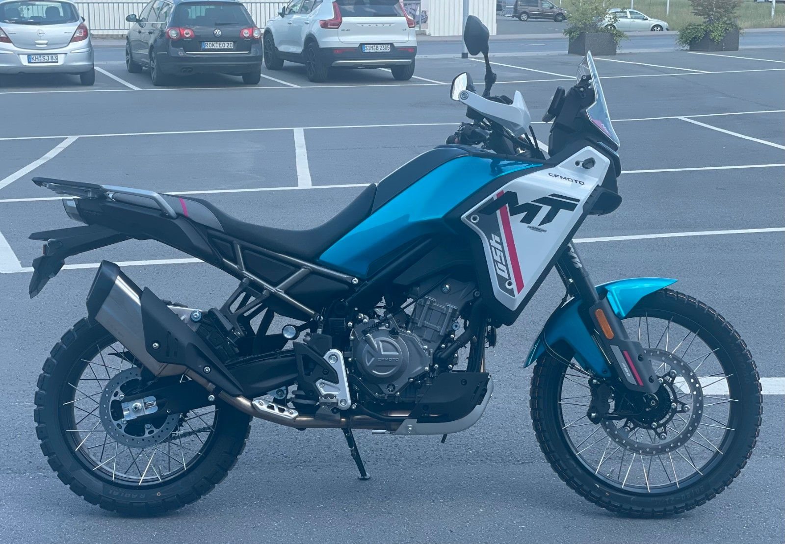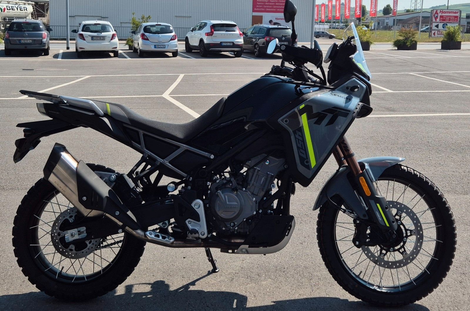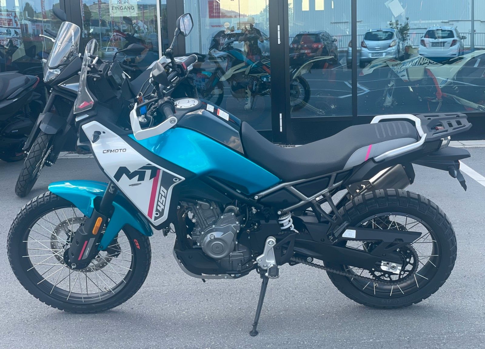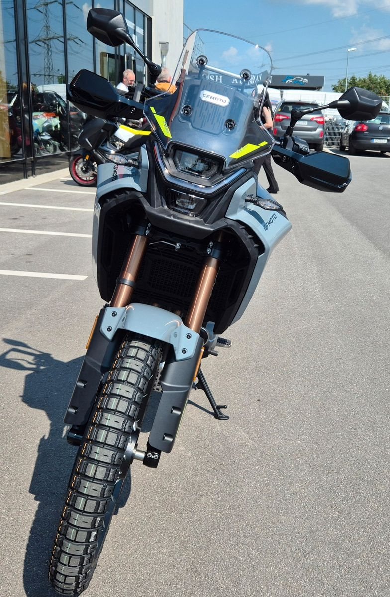 Die CFMOTO 450MT liefert mit ihrer Kombination aus hervorragender Geländegängigkeit und unu?bertroffener Vielseitigkeit eine neue Definition von Adventure-Touring. Ausgestattet mit modernster Technologie und hochwertigen Komponenten zieht die 450MT alle Register - ob in unwegsamen Gelände oder auf anspruchsvollen Landstraßen. Ausgestattet mit einem 449 cm Zweizylinder-Motor, liefert die 450MT satte 42 PS und ein maximales Drehmoment von 42 Nm. Das voll einstellbare KYB-Fahrwerk mit großem Federweg, der Reifendrucksensor, ABS mit abschaltbarer Hinterradfunktion und TCS sorgen für perfekte Kontrolle - egal ob du auf Schotter, in der Stadt oder auf kurvigen Landstraßen unterwegs bist.