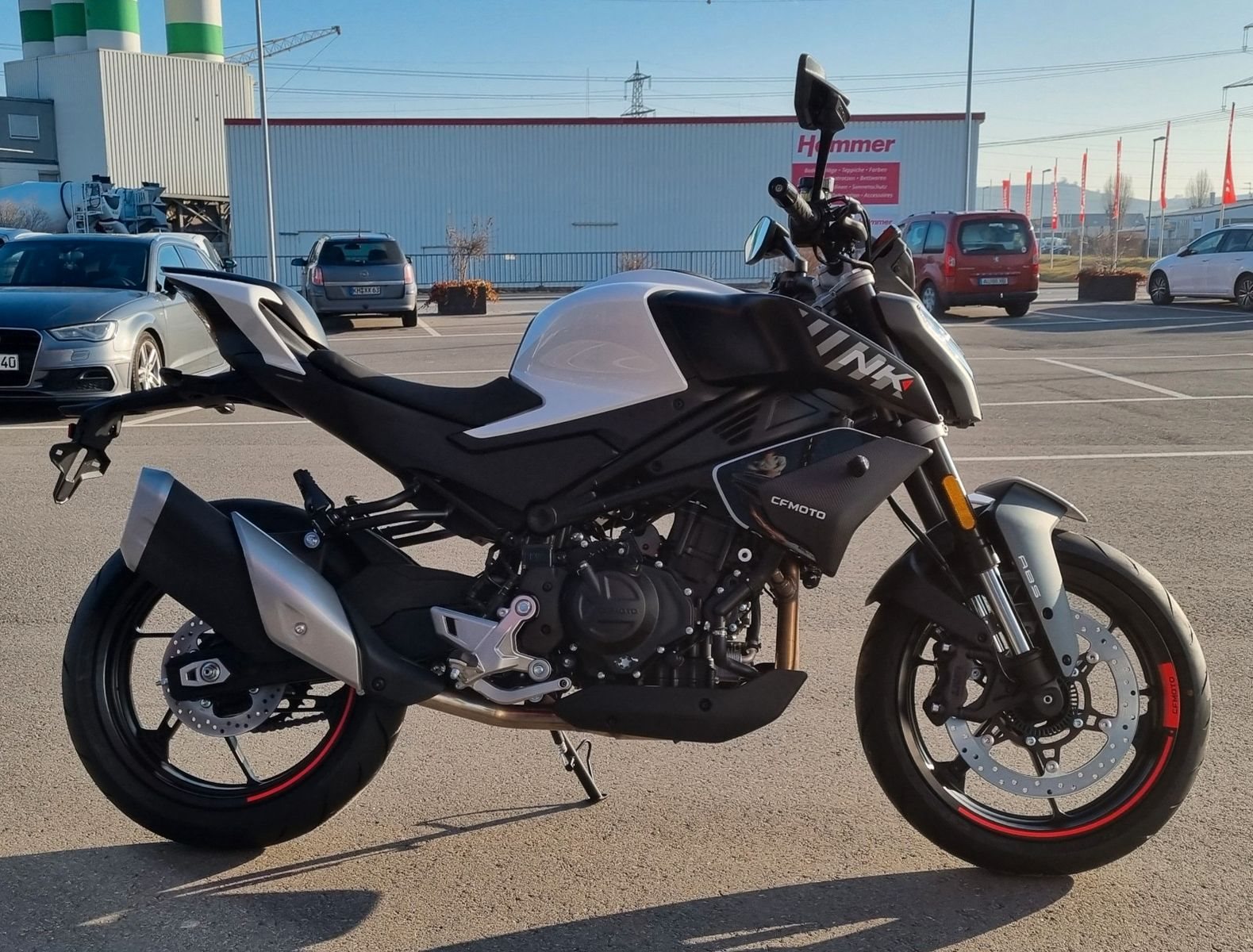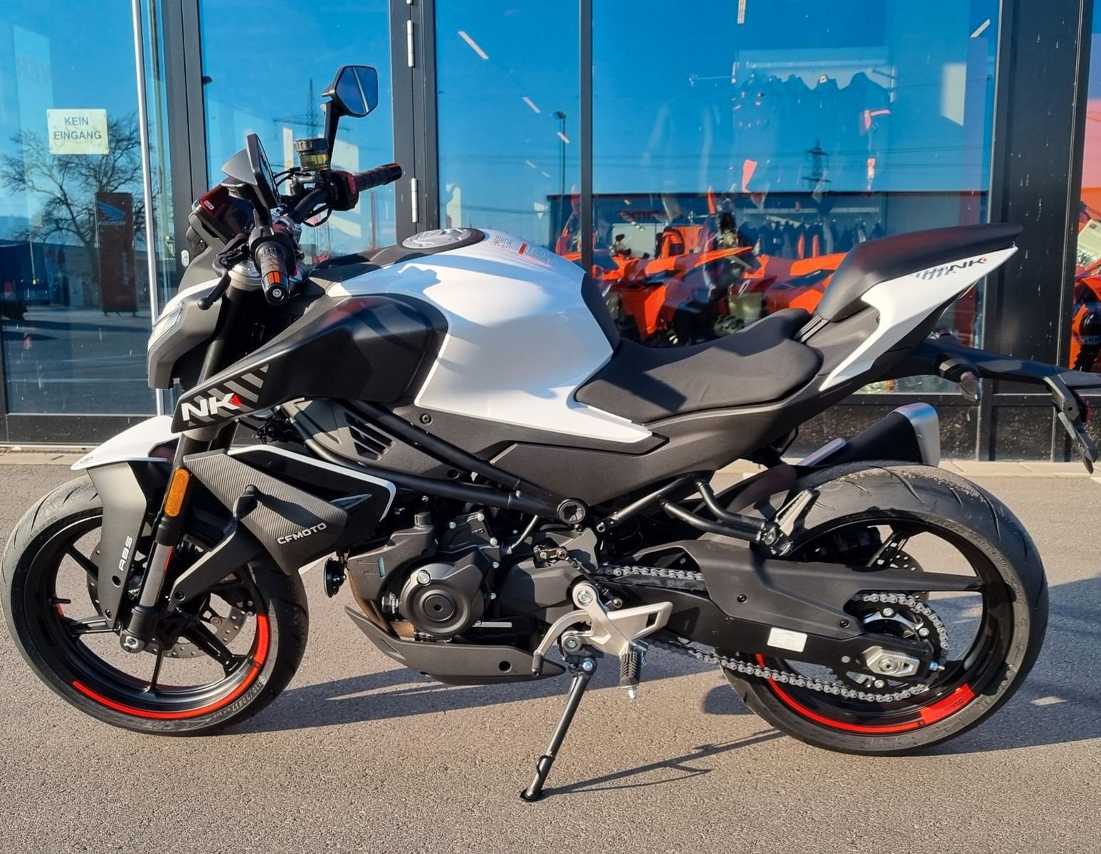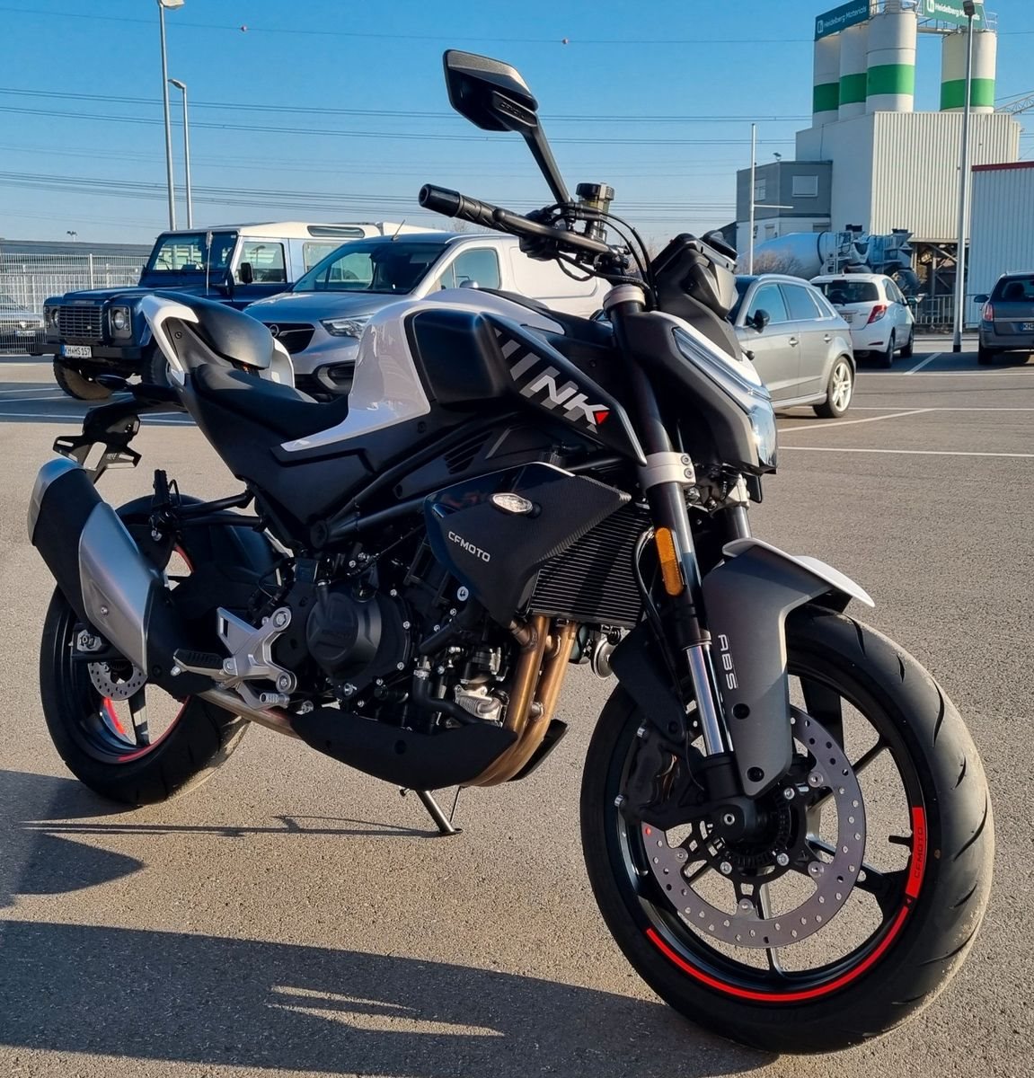 450NK Cut the edge Worauf wartest du? Steig auf, gib Gas und erobere die Straße. Die brandneue CFMOTO 450NK ist das ideale Sprungbrett für Anfänger, die sich mehr Leistung wünschen, sowie für Wiedereinsteiger. Ob auf dem täglichen Weg zu Arbeit oder gewundenen Bergstraßen - der flüssigkeitsgekühlte Parallel-Zweizylindermotor steuert ausreichend Drehmoment bei, um mit dem Verkehr Schritt zu halten, während das wendige Handling für Fahrspaß bei jeder Geschwindigkeit sorgt. Mit einer Premium-Verarbeitungsqualität, einem außergewöhnlichen Preis-Leistungs-Verhältnis und unübertroffenen Fähigkeiten ist die 450NK das beste mittelschwere Naked Bike seiner Klasse.