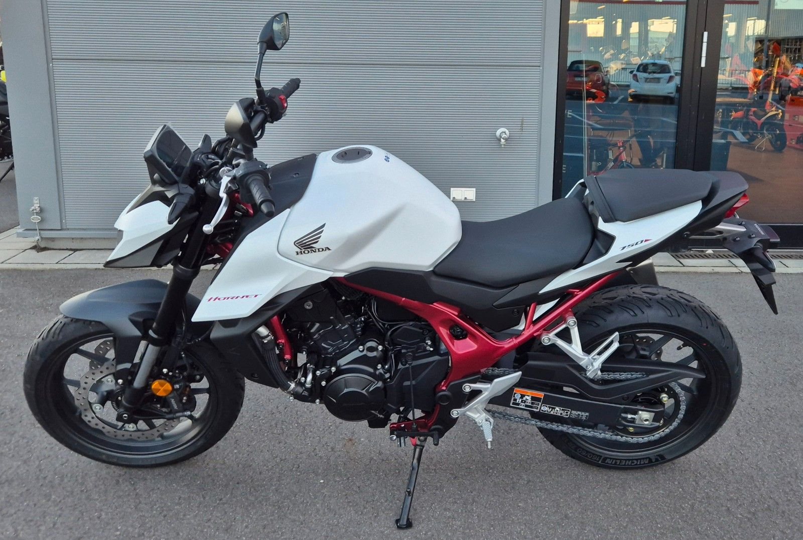 Mit der neuen CB750 Hornet stichst du heraus. Diese neue Generation liefert klassenbeste Leistung durch ein leichtes Fahrwerk, das perfekt auf sportliche Leistung abgestimmt ist. Der markante Streetfighter-Stil, kombiniert mit einem neu gestalteten, leistungsstärkeren LED-Doppelscheinwerfer, sorgt dafür, dass du auf der Straße auffällst. Mit dem innovativen Look und der gesteigerten Leistung ist die CB750 Hornet eine Klasse für sich.