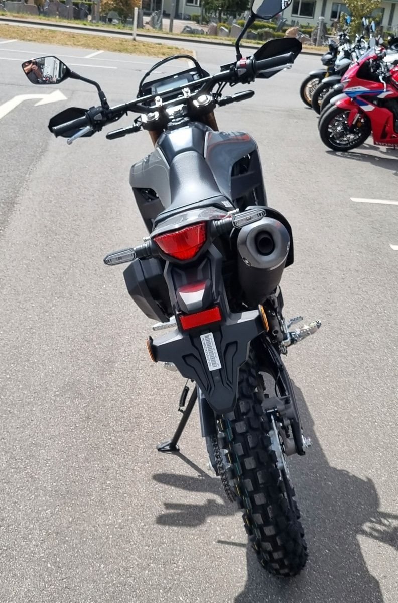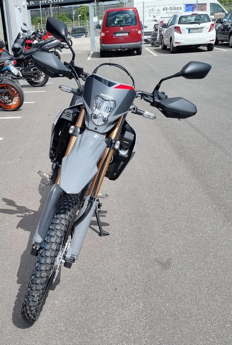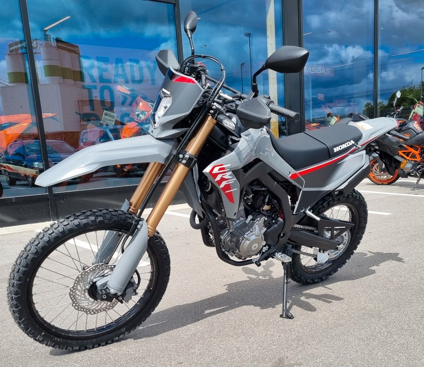 Die CRF300L ist dank neuem Rahmen und der konischen Aluminiumschwinge 4 kg leichter. Das macht sich auf der Straße und im Gelände vor allem beim Lenken bemerkbar. Der größere Hubraum des Einzylindermotors erzeugt zusätzliche 1,9 kW Leistung und ein um 4 Nm höheres Drehmoment - das spürt man beim Gas geben. Darüber hinaus verfügt die Maschine jetzt über eine Anti-Hopping-Kupplung. Die Bodenfreiheit wurde erhöht und die Fahrposition auf optimale Kontrolle abgestimmt. Der Tank ist schlank und die Kontur der komfortablen Sitzbank erleichtert das Abstützen auf dem Boden. Eine Ganganzeige im Cockpit und das aggressive Scheinwerferdesign verleihen der Maschine den letzten Schliff.
