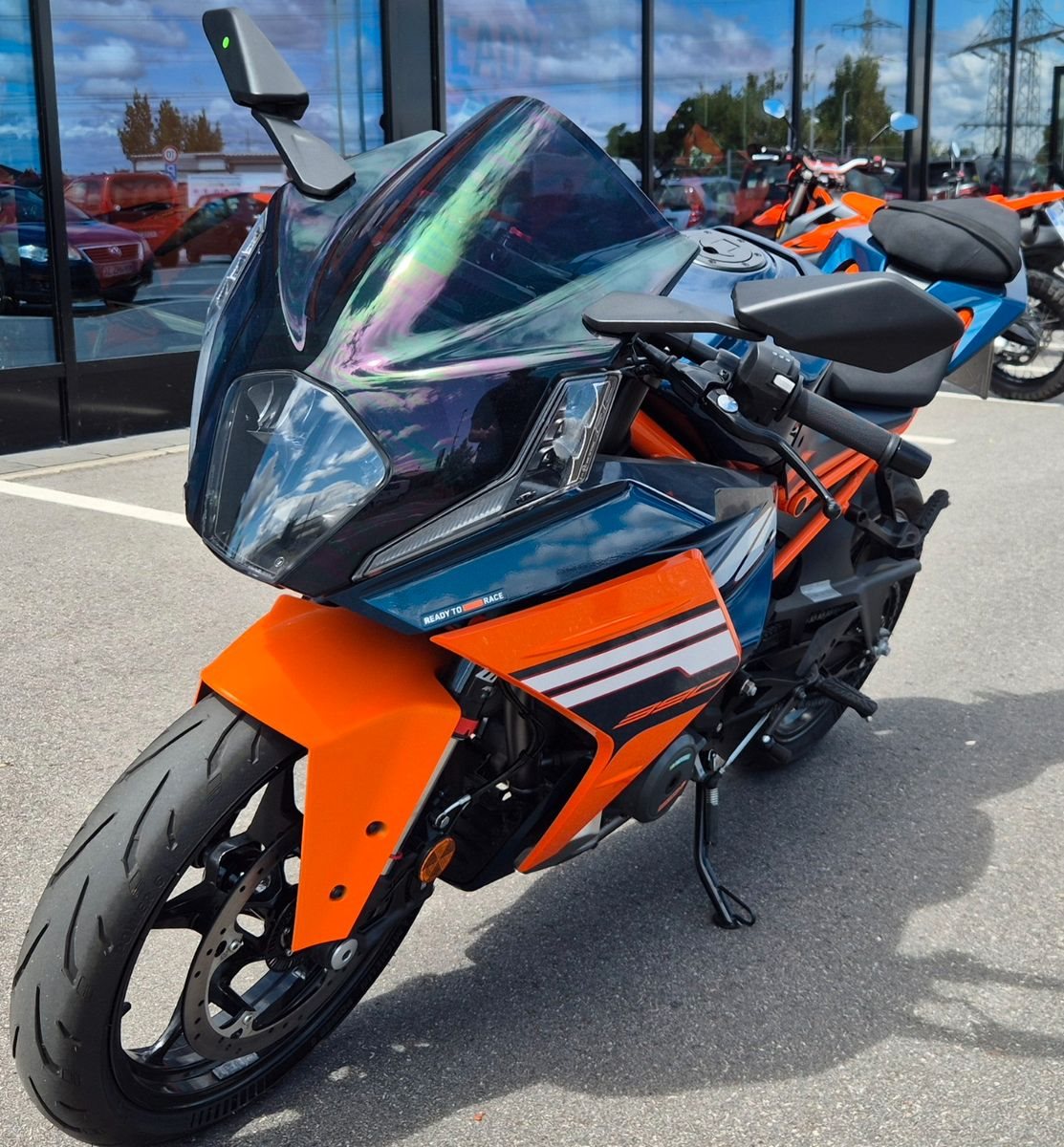 Die KTM RC 390 der Generation 2024 ist ein High-Performance-Supersport-Motorrad mit Wurzeln im Rennsport. Ein beeindruckendes Technologie-Pakets, ein aus dem Rennsport abgeleitetes Styling und Handling und eine süchtig machende Leistungsabgabe verwandeln die KTM RC 390 in einen Alltags-Racer mit einer beeindruckenden Ahnengalerie.
