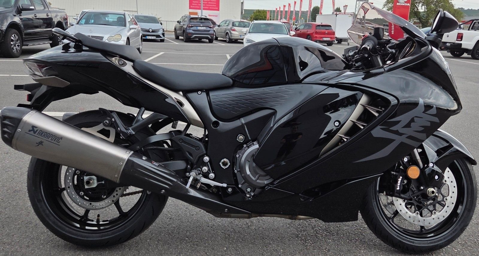Ein Meisterwerk aus Kraft, Aerodynamik und purem Fahrspaß. In der Power Edition setzt die Hayabusa noch einen drauf: Der Akrapovic Slip-On Endschalldämpfer verleiht ihr einen tiefen, kraftvollen Sound, der Gänsehaut garantiert. Ein Klang, der die Straße vibrieren lässt und dein Herz schneller schlagen lässt.